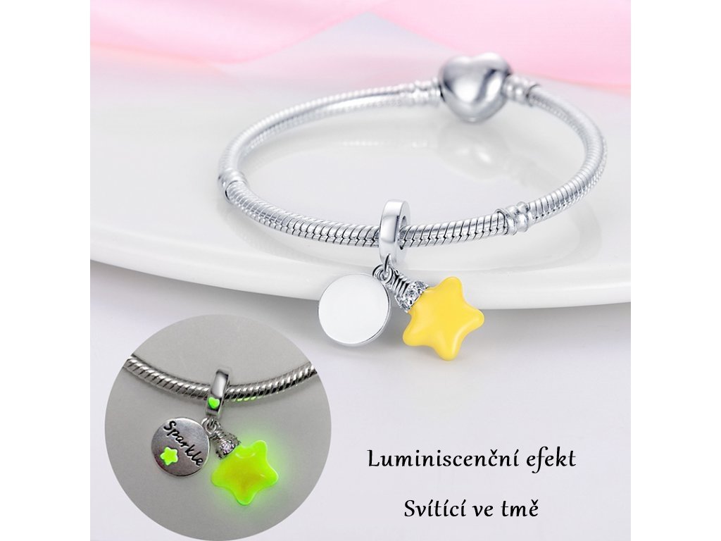 - Stříbrný přívěsek v designu hvězdy svítící ve tmě (luminiscence)