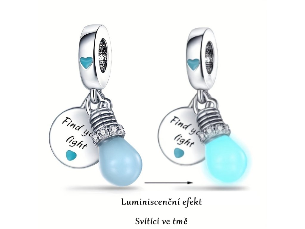- Stříbrný přívěsek v designu žárovky svítící ve tmě (luminiscence)