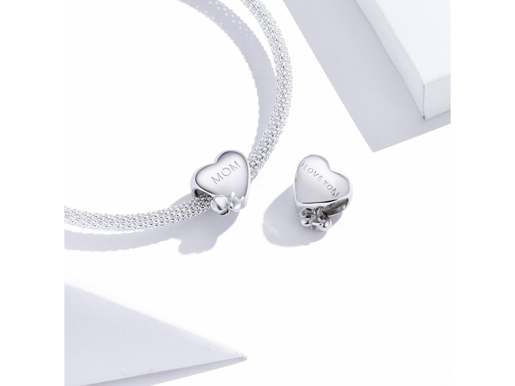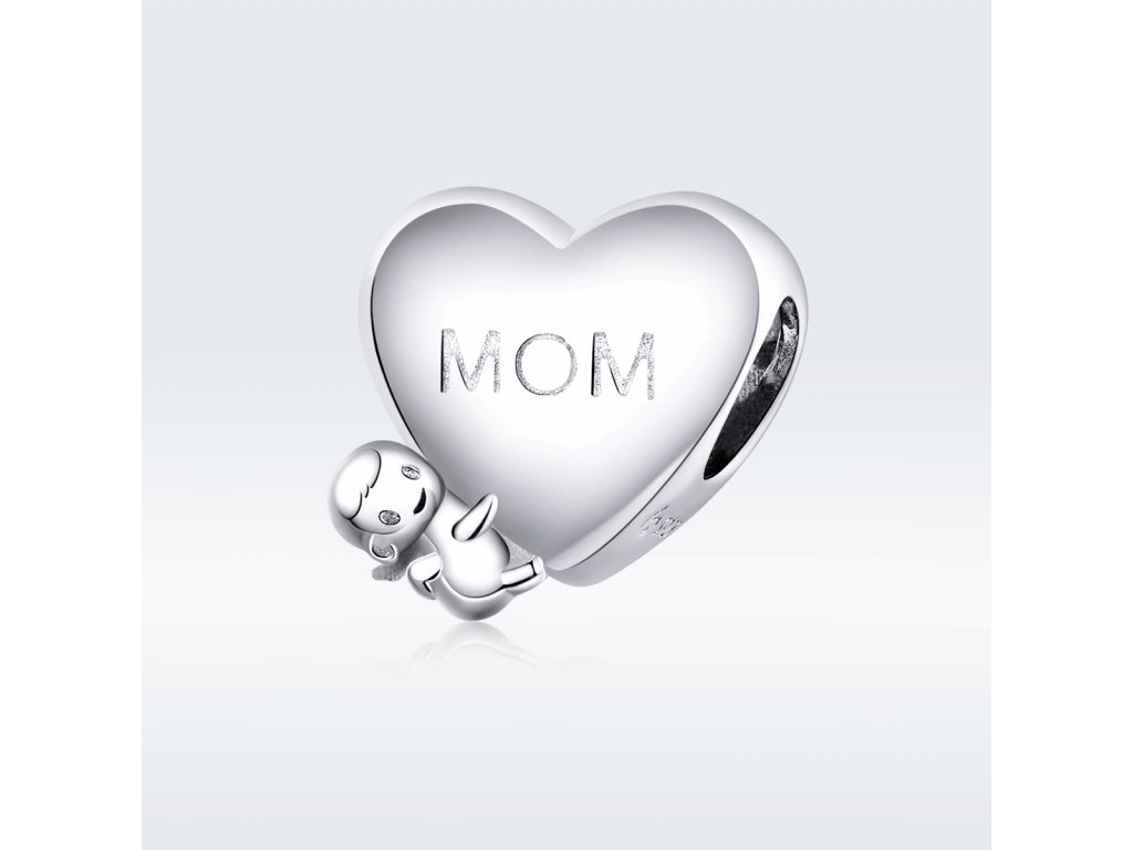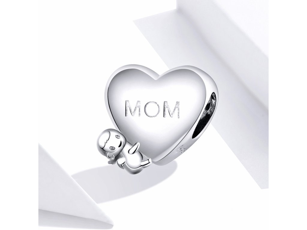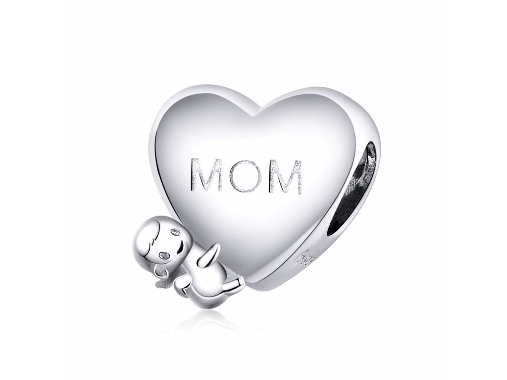 - Stříbrný přívěsek ve tvaru srdce s postavičkou miminka zdobený anglickými nápisy "mom" a "i love you" v překladu "maminka" a "miluji tě". Originální design přívěsku, kvalitní zpracování a materiál, ručně dohotovené.