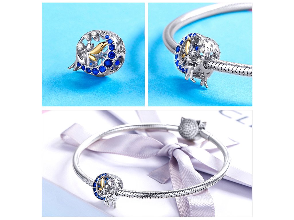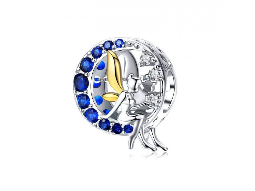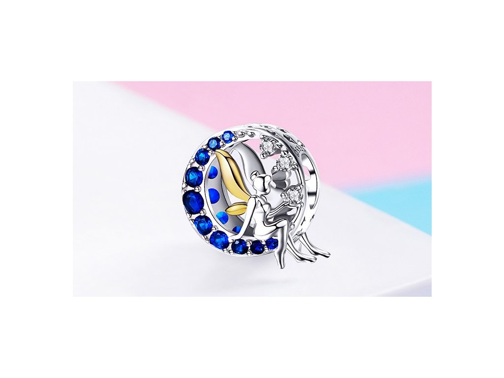 - Romantický, pohádkový přívěsek v designu měsíční víly zdobené čirými a tmavě modrými blyštivými zirkony.