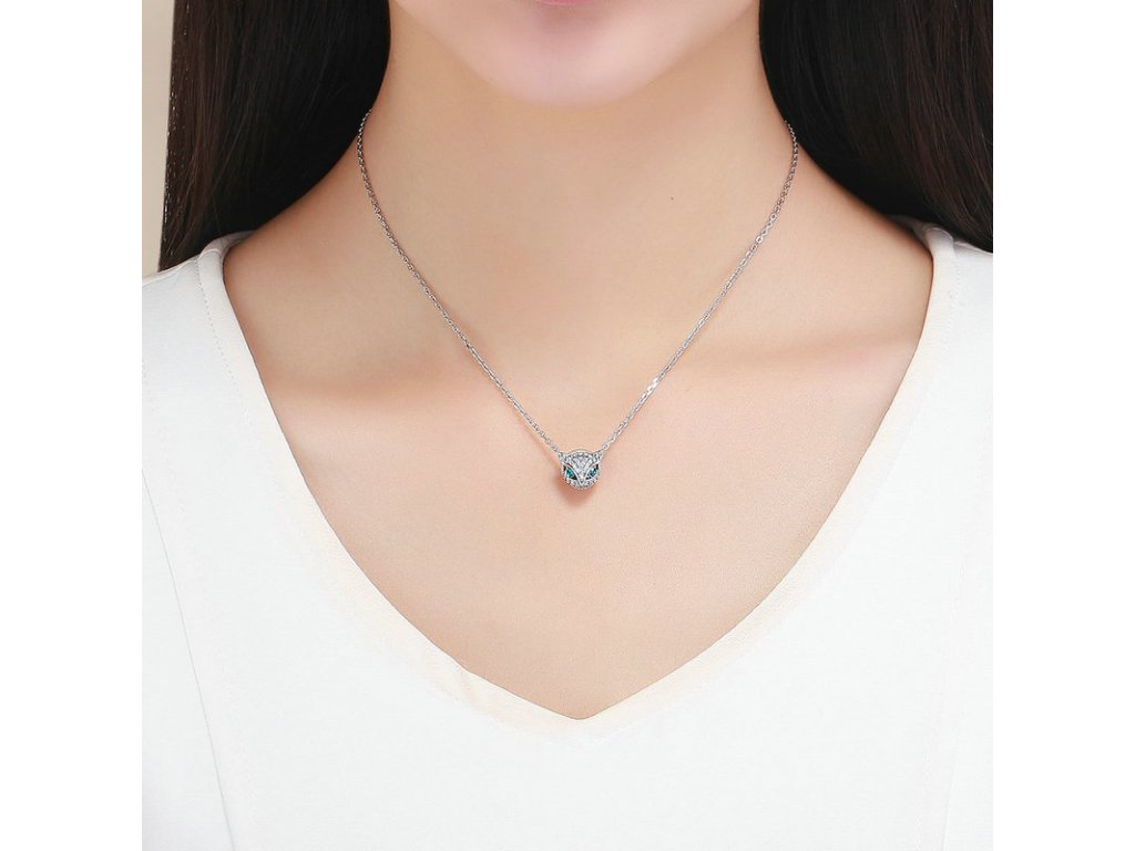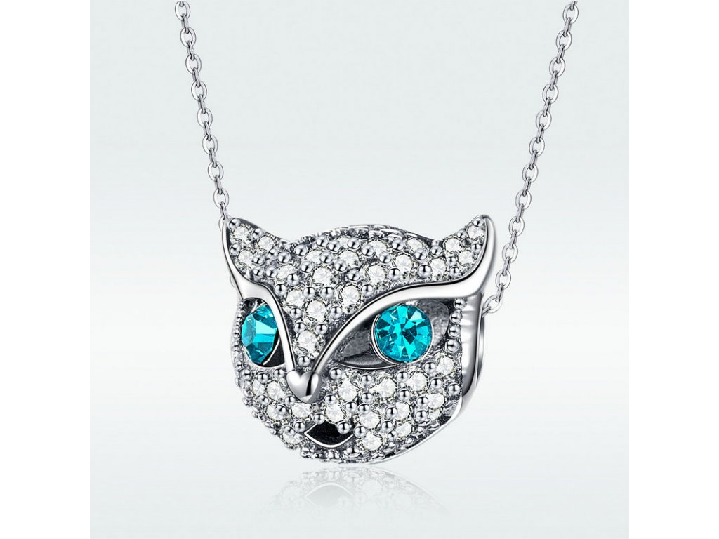 Krásný stříbrný přívěsek ve tvaru kočky zdobené zirkony čiré a modré barvy. Originální design přívěsku, kvalitní zpracování a materiál, ručně dohotovené.