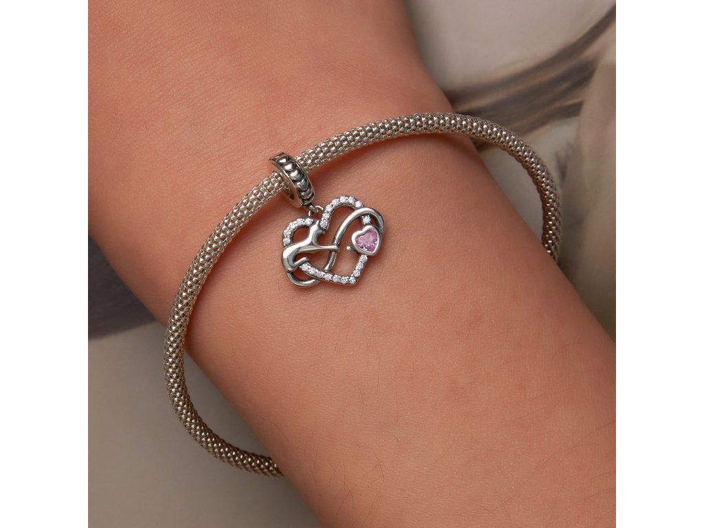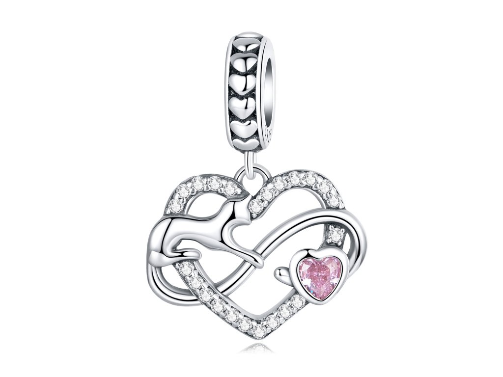 - Stříbrný visací přívěsek ve tvaru srdce s milovanou kočičkou. Přívěsek je zdoben broušeným růžovým zirkonem ve tvaru srdce a čirými třpytivými zirkony. Originální design přívěsku, kvalitní zpracování a materiál, ručně dohotovené.