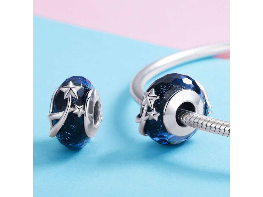 - Krásný stříbrný přívěsek / korálek Murano Hvězdné nebe. Originální design přívěsku, kvalitní zpracování a materiál, ručně dohotovené.