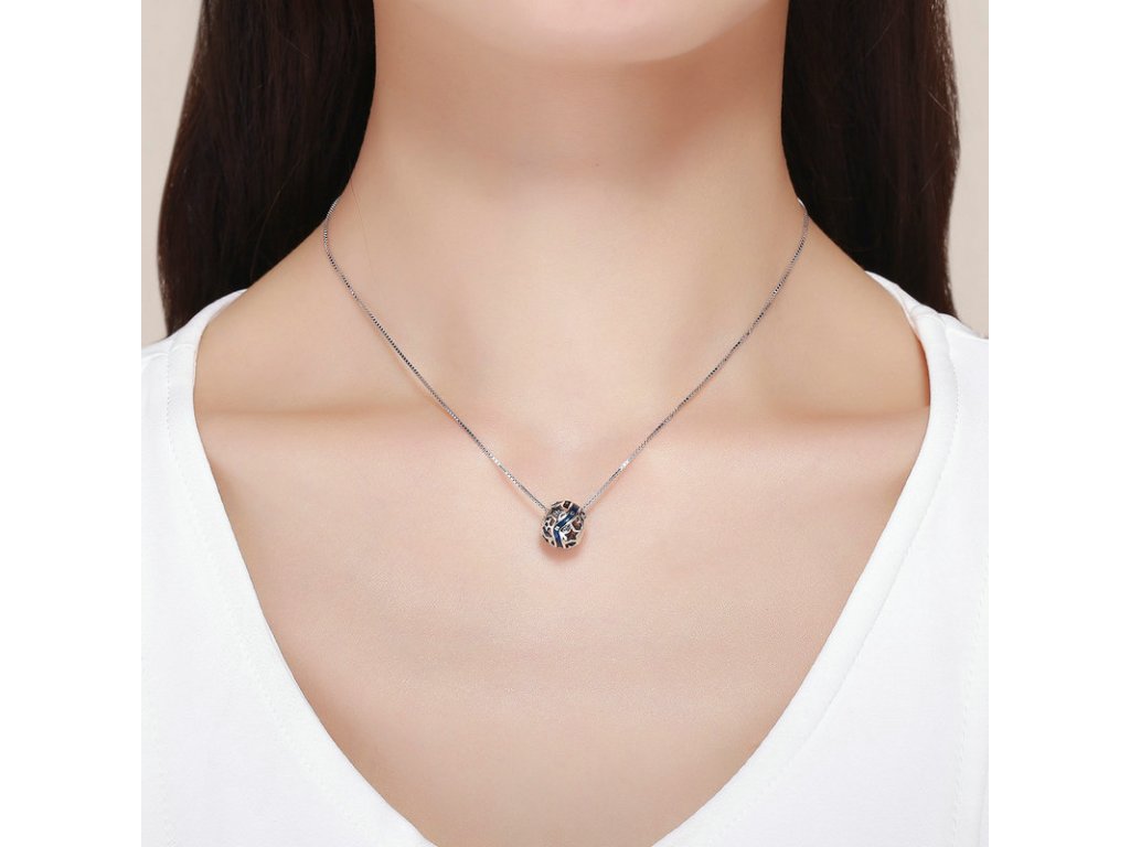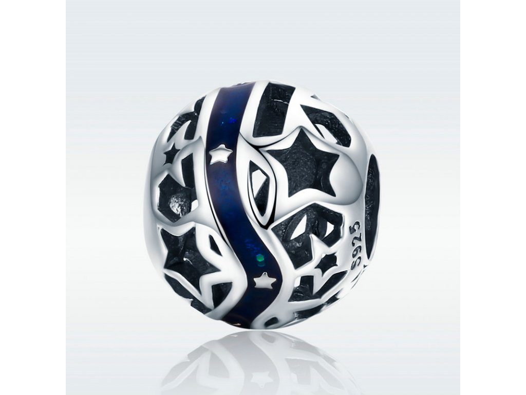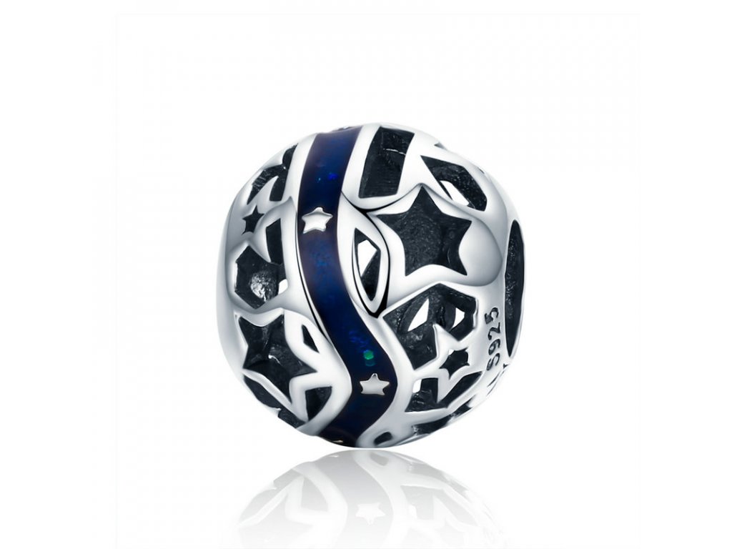 - Detailně propracovaný korálek kulatého tvaru připomínající noční oblohu, který je po svém obvodu zdobený modrou glazurou. Originální design přívěsku, kvalitní zpracování a materiál, ručně dohotovené.