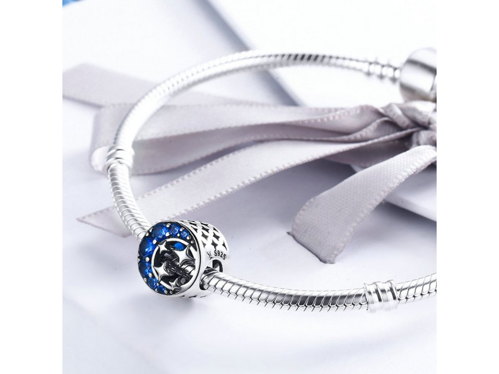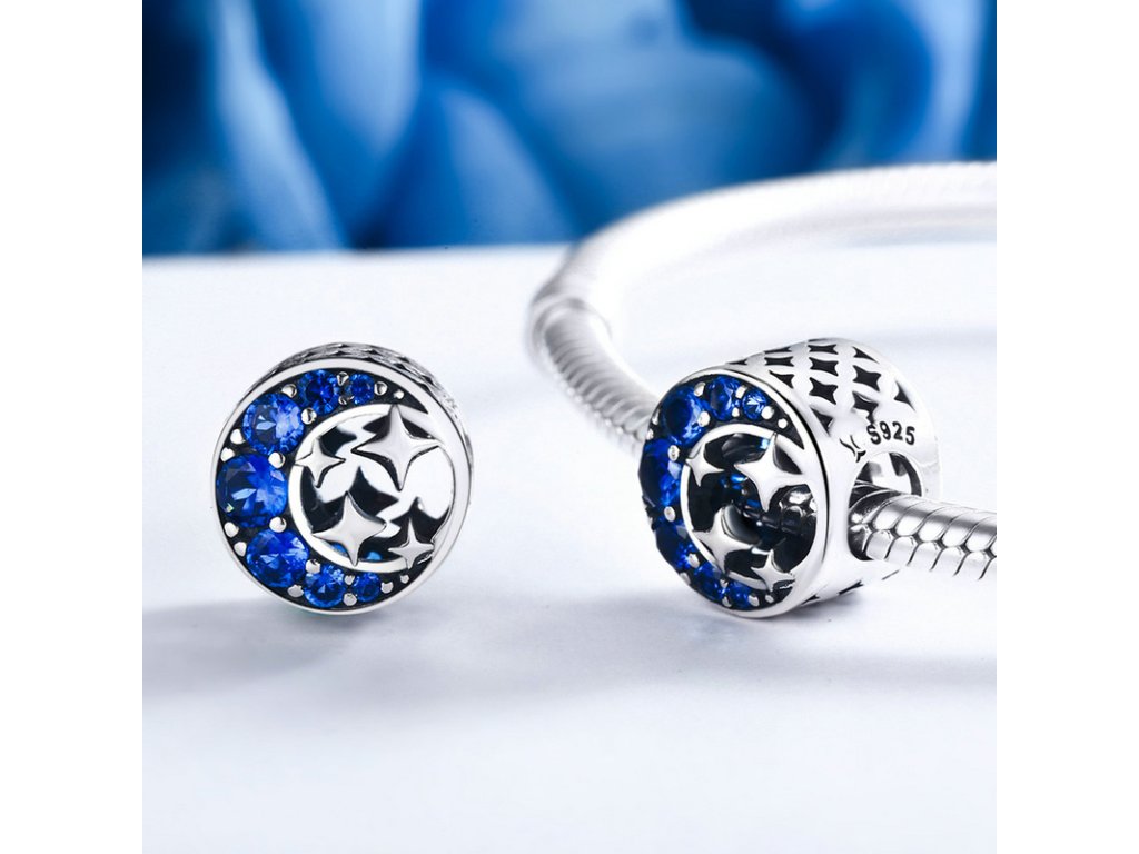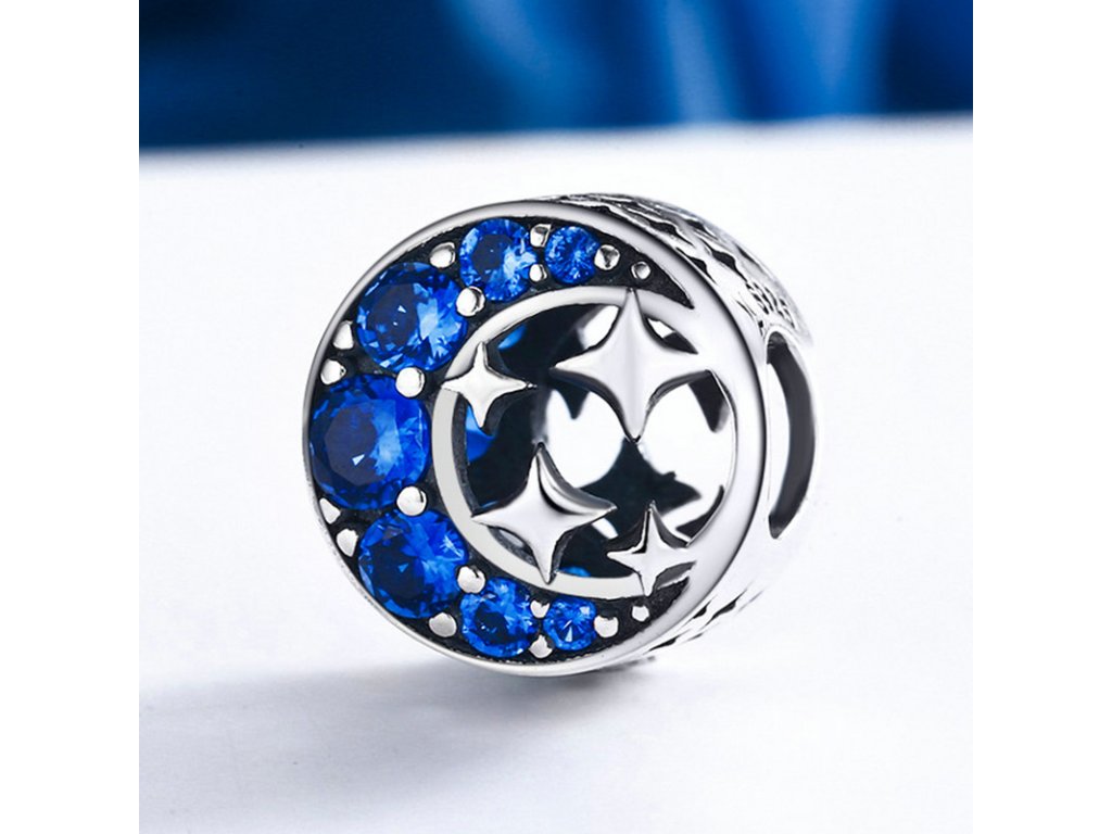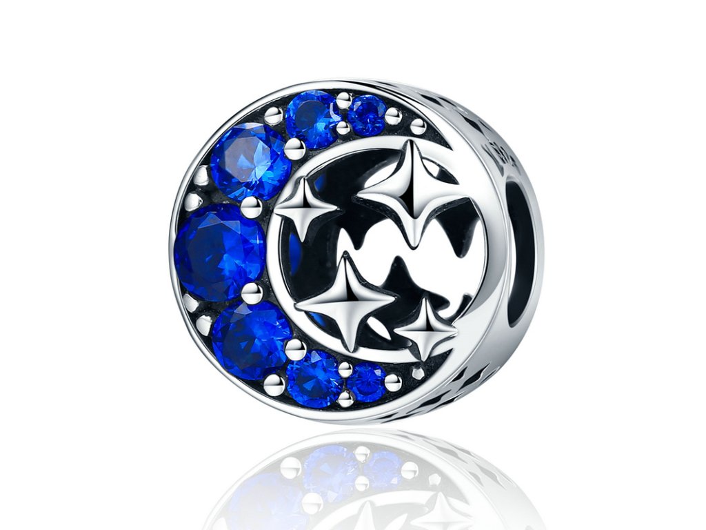 Luxusní přívěsek obohacený posázenými modrými kameny a ručně vyřezávanými večerními hvězdy.