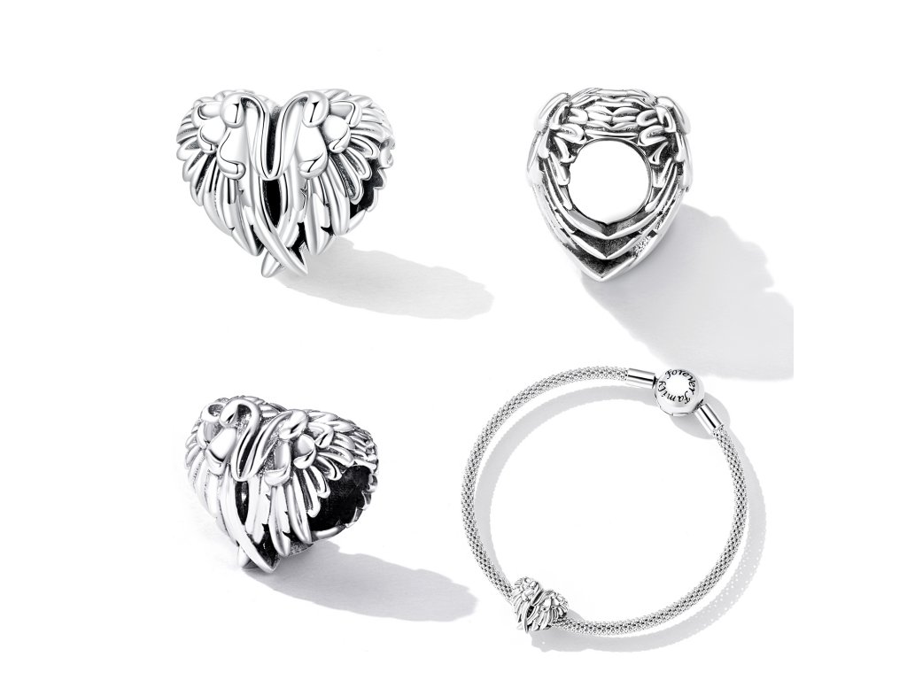 - Stříbrný přívěsek ve tvaru srdce zdobeného andělskými křídly. Originální design přívěsku, kvalitní zpracování a materiál, ručně dohotovené.