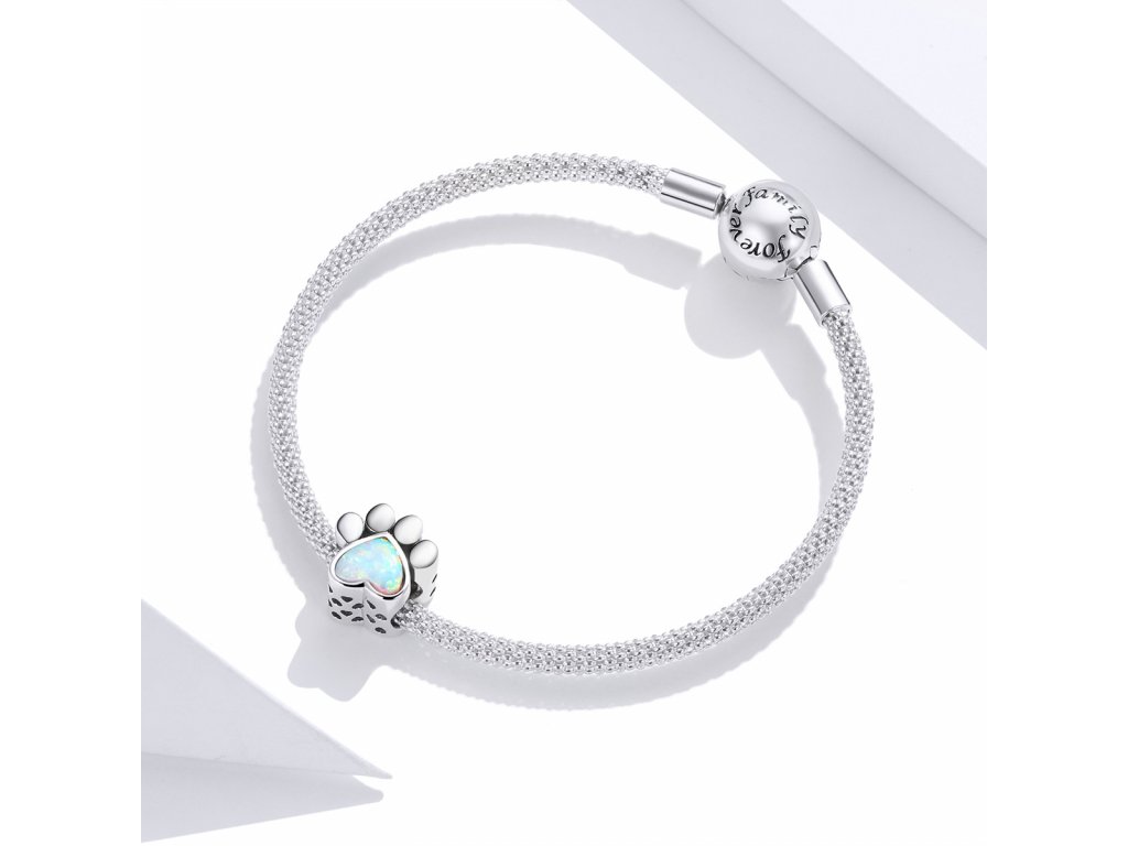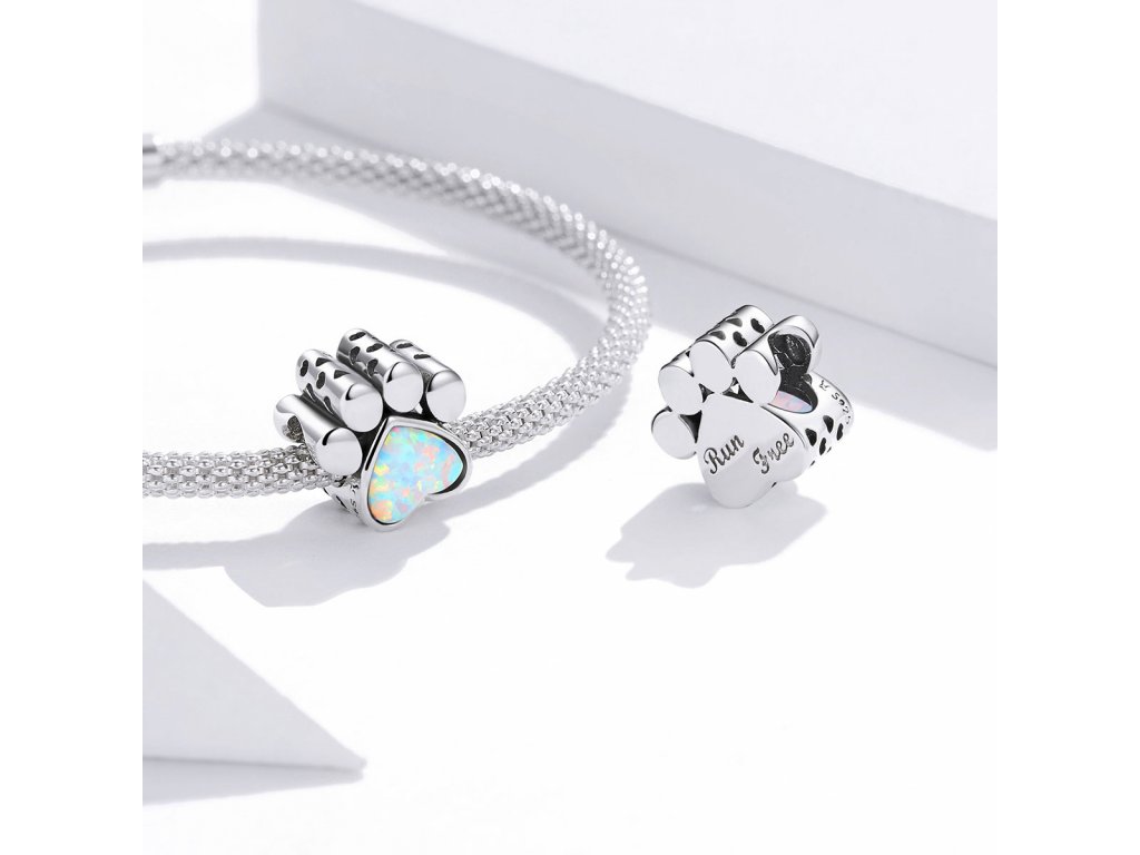 - Stříbrný přívěsek v designu Packy / tlapky zdobený barevným opálem. Přívěsek je také zdoben ručně vyřezávanými milovanými srdíčky po stranách. Originální design přívěsku, kvalitní zpracování a materiál, ručně dohotovené.