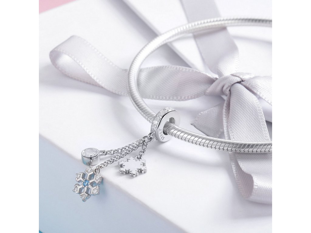 Elegantní stříbrný visací přívěsek v designu padajících sněhových vloček se zirkony čiré a tyrkysové barvy. Slaďte přívěsky s ostatními šperky značky Royal Fashion a vytvořte tak neodolatelný set. Originální design přívěsku, kvalitní zpracování a materiál, ručně dohotovené.