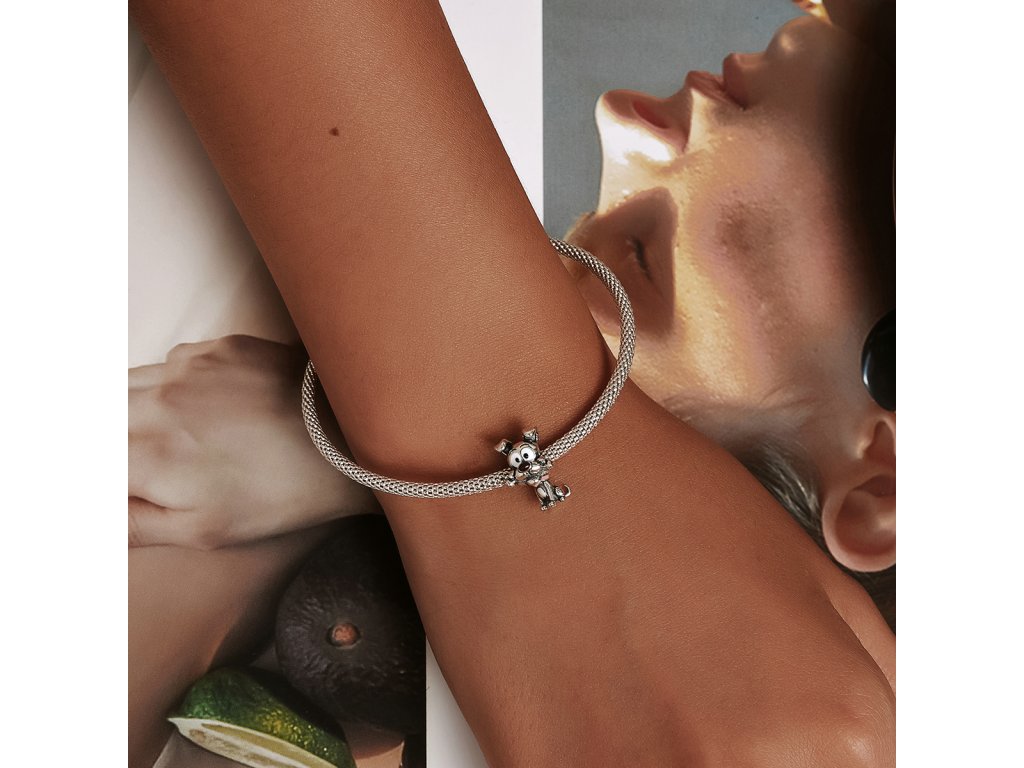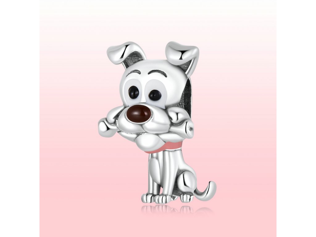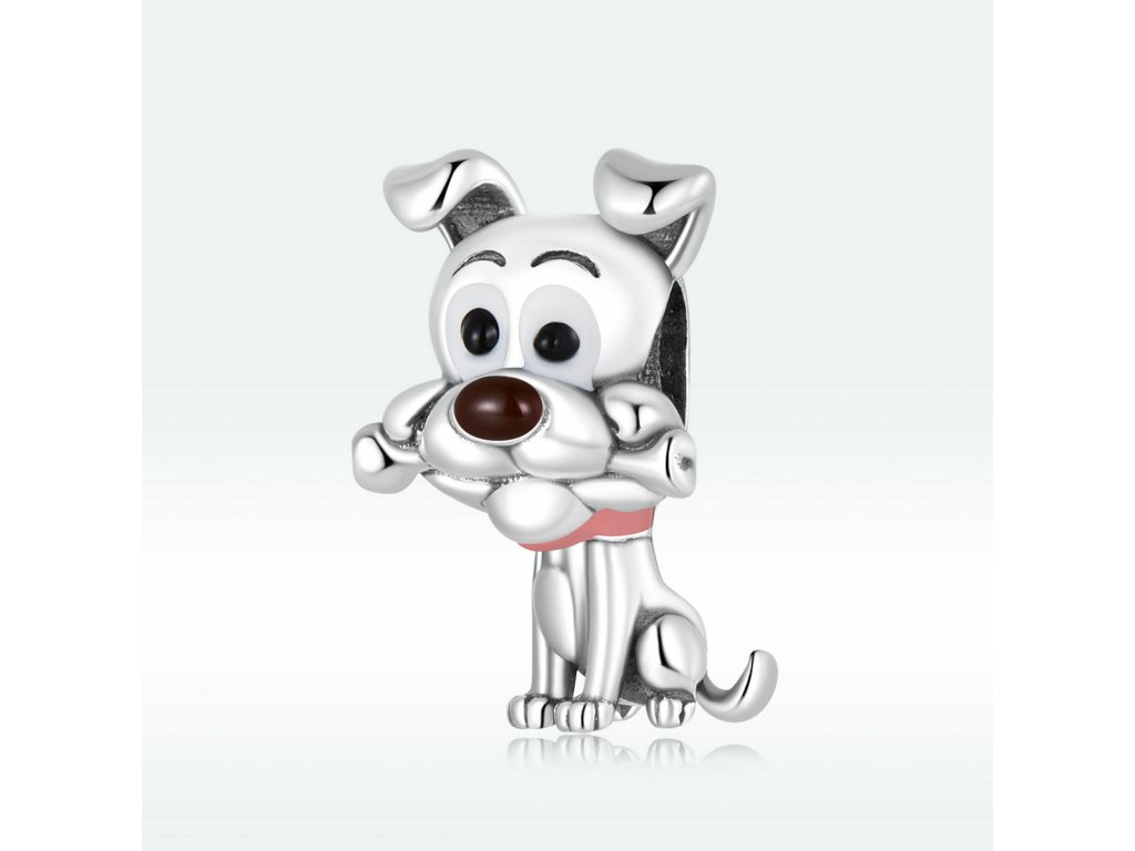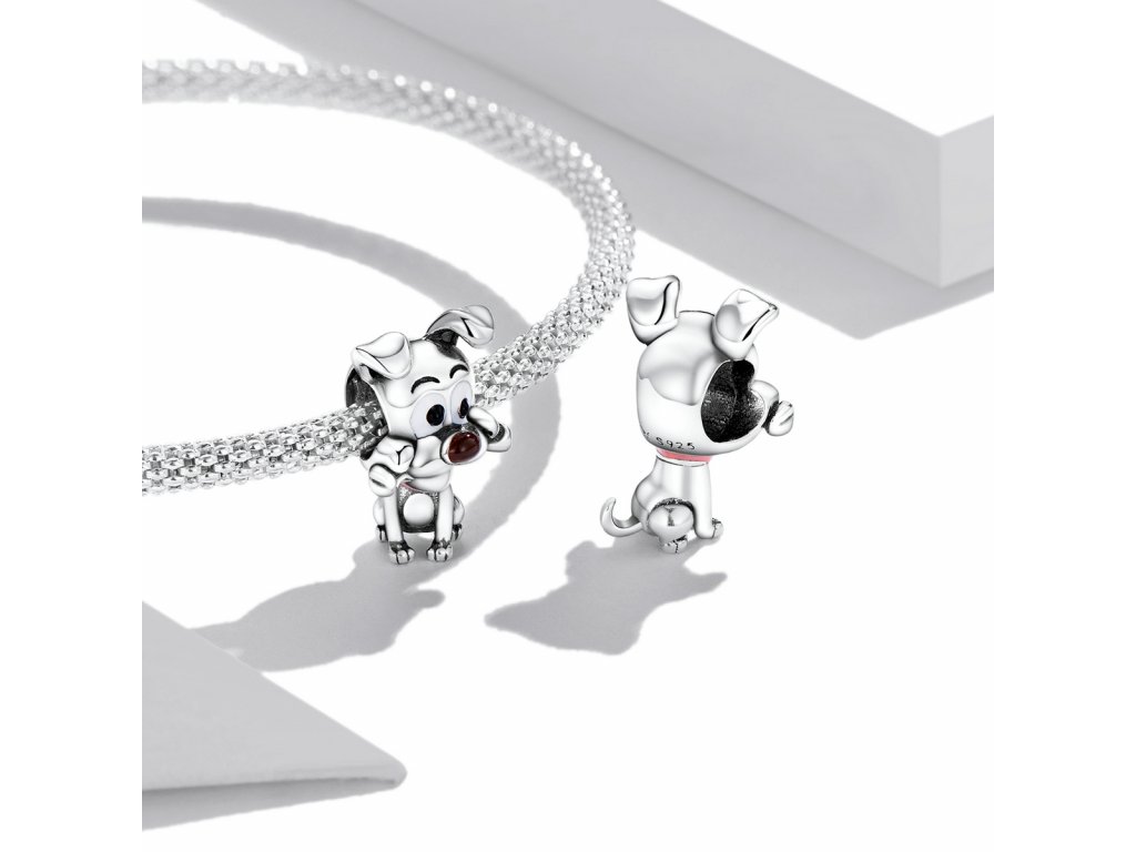 - Stříbrný přívěsek v designu hravého pejska s kostičkou zdobeného ručně nanášenou barevnou glazurou. Originální design přívěsku, kvalitní zpracování a materiál, ručně dohotovené.