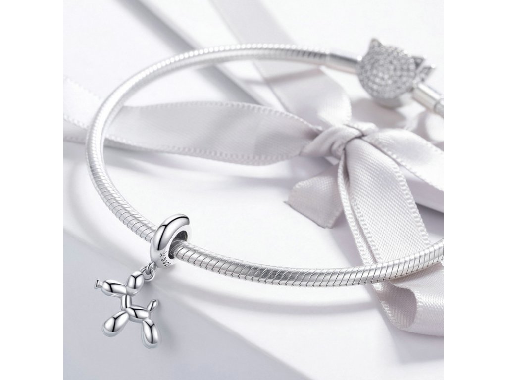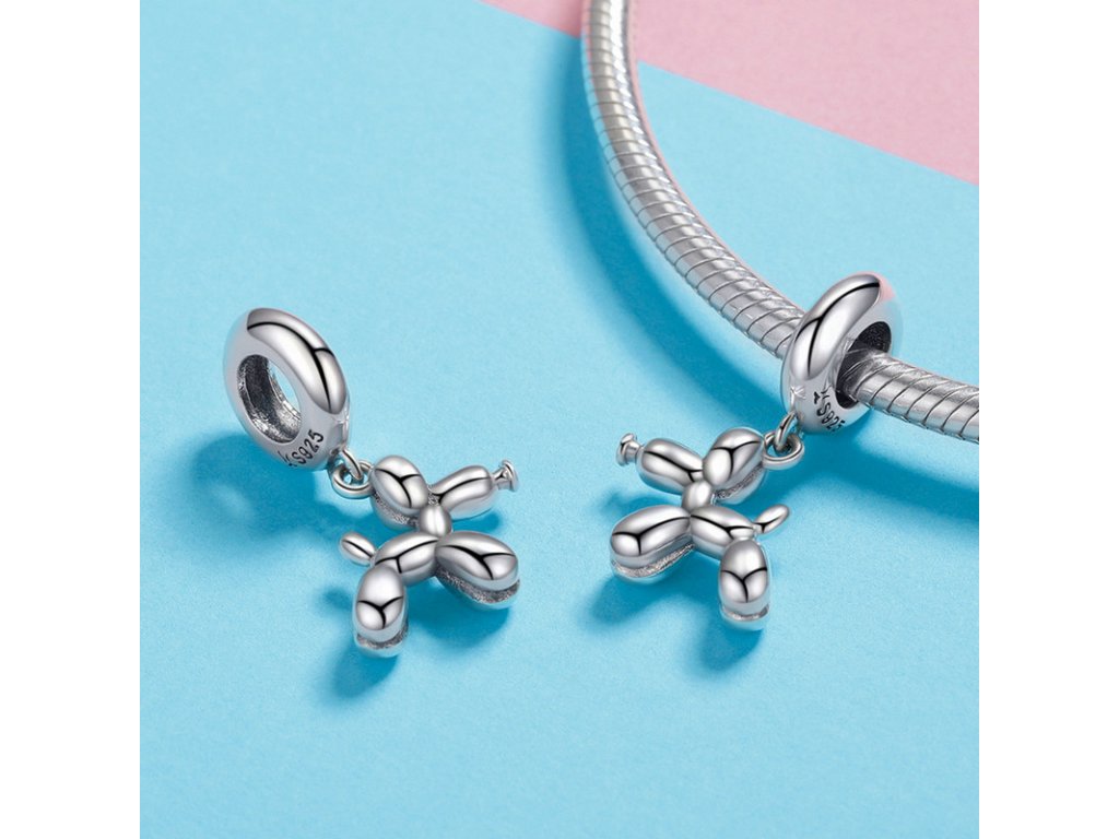 Krásný a hravý stříbrný přívěsek v designu pejska z balónku. Originální design přívěsku, kvalitní zpracování a materiál, ručně dohotovené.