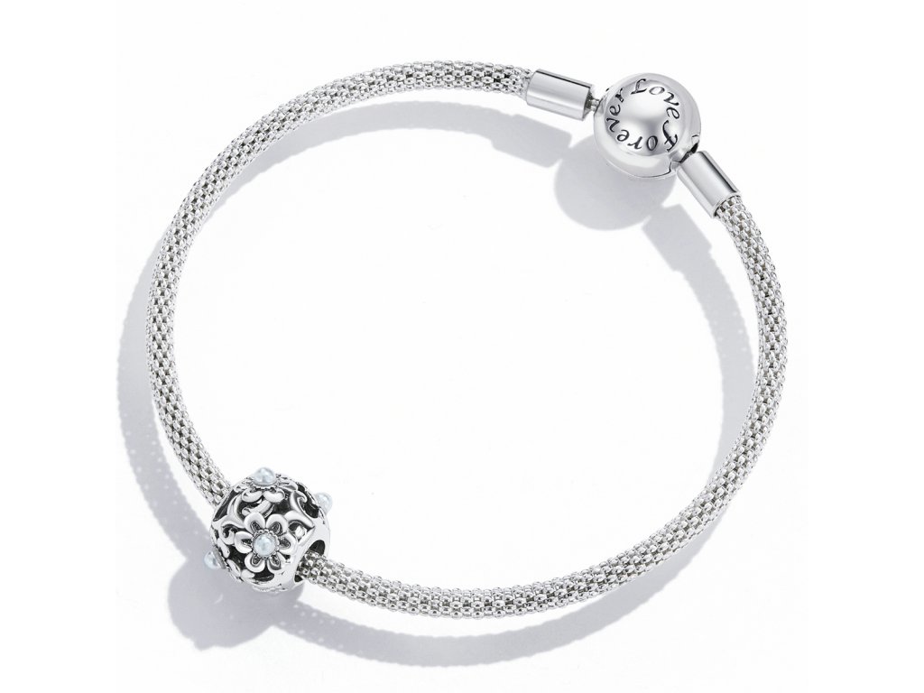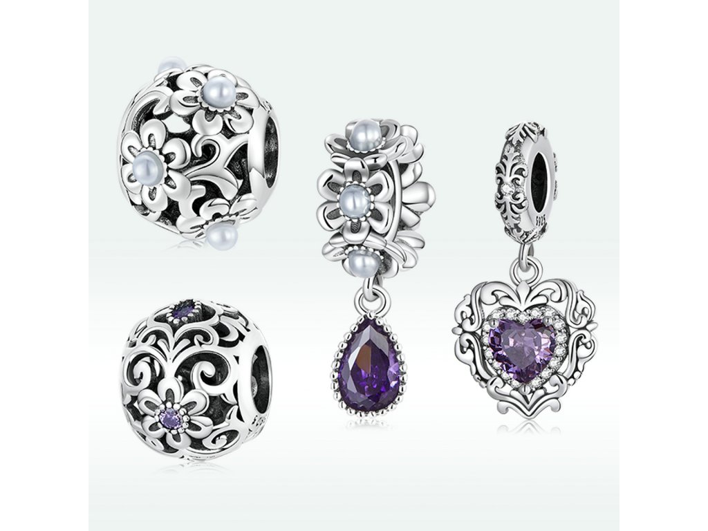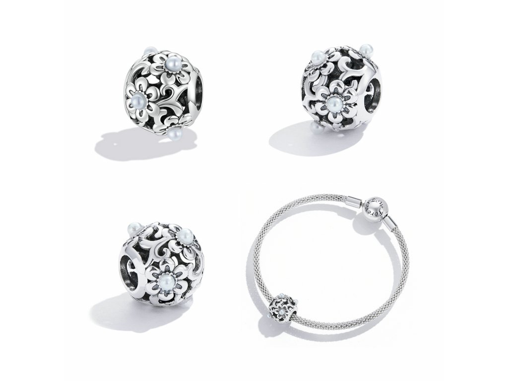 - Stříbrný přívěsek / korálek v designu krásných květů zdobených jemnými perlami. Originální design přívěsku, kvalitní zpracování a materiál, ručně dohotovené.