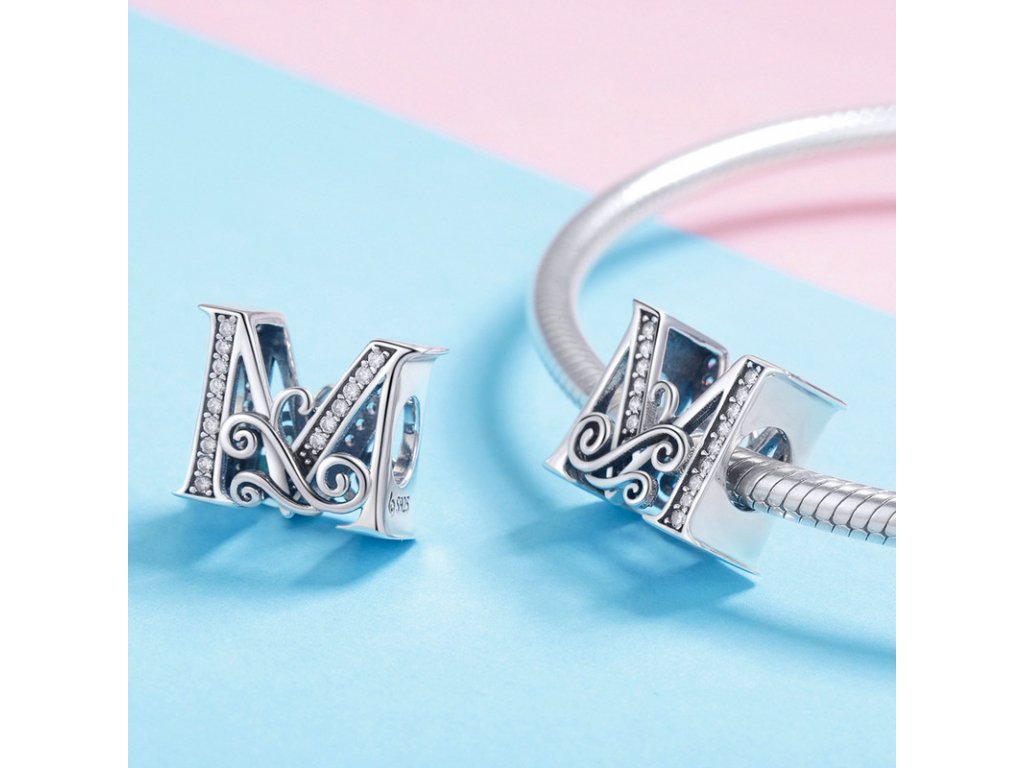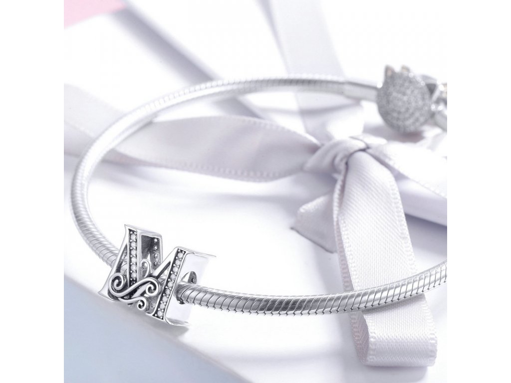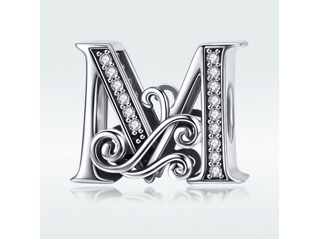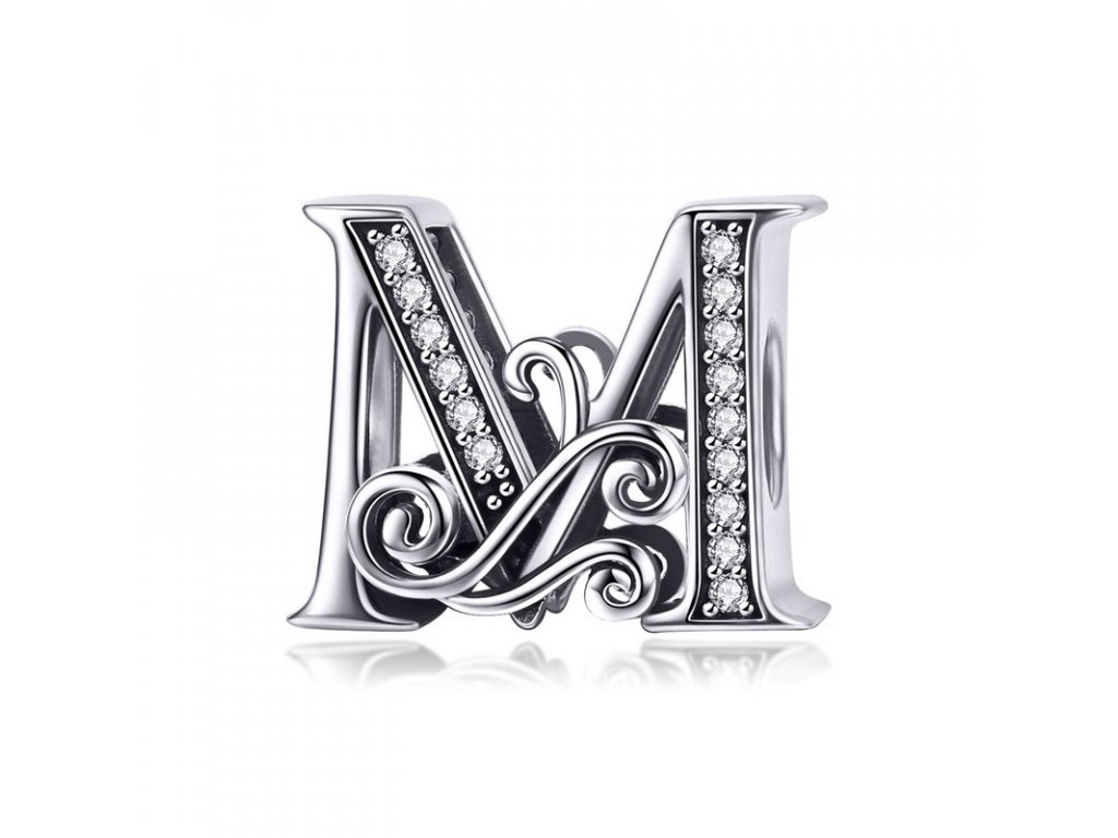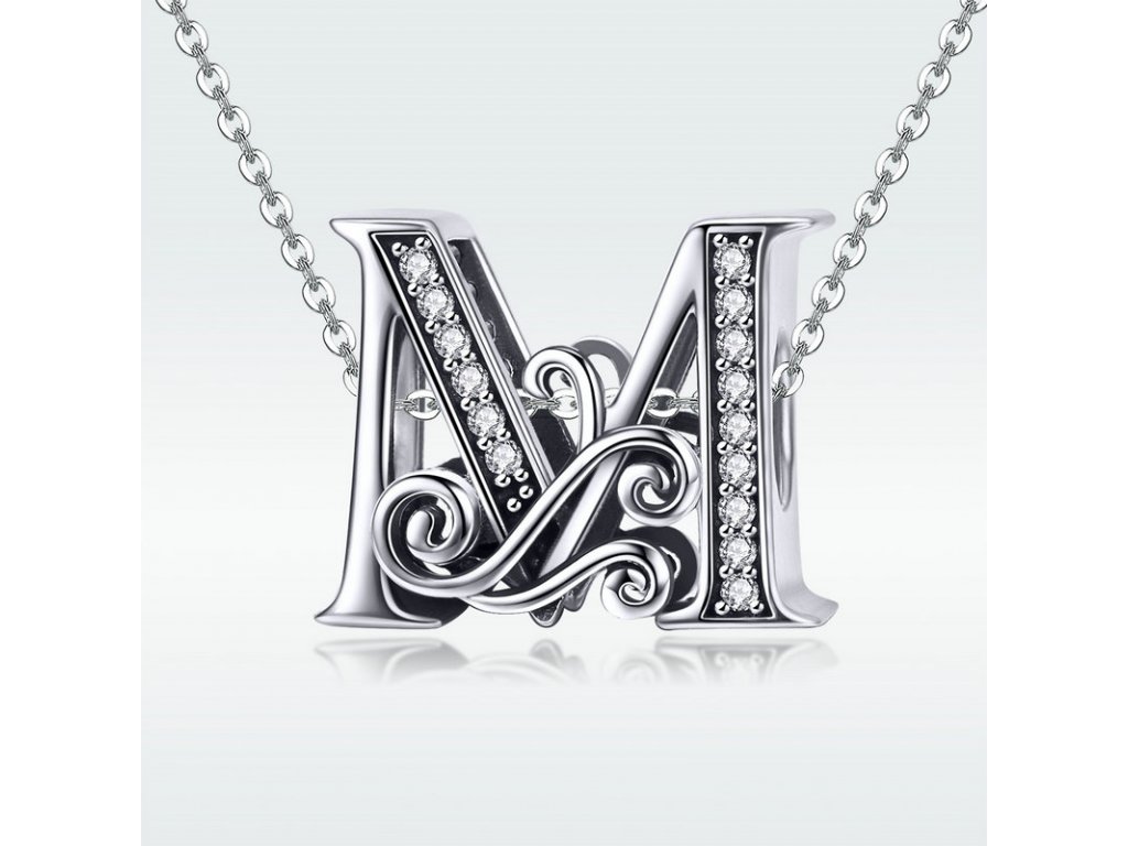 Luxusní a propracovaný stříbrný přívěsek ve tvaru písmenka "M" zdobený třpytivými zirkony. Obdarujte sebe nebo své blízké tímto stříbrným kouzlem. Originální design prstenu, kvalitní zpracování a materiál, ručně dohotovené.