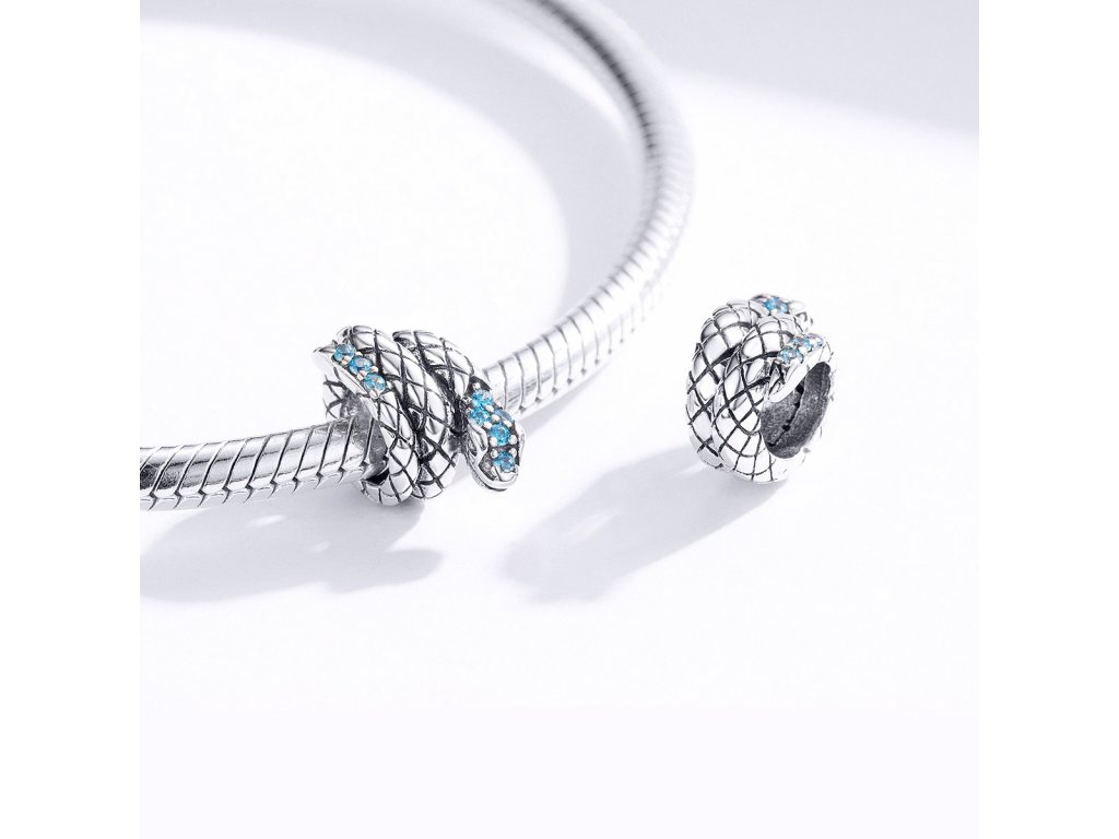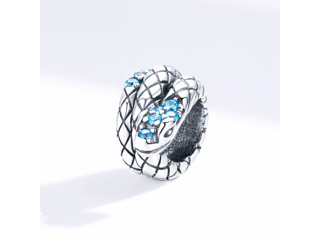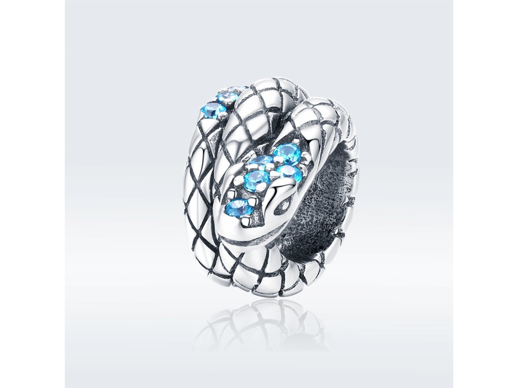 - Stříbrný přívěsek v designu Pohádkového hada zdobeného smaltem a modrými zirkony. Originální design přívěsku, kvalitní zpracování a materiál, ručně dohotovené.