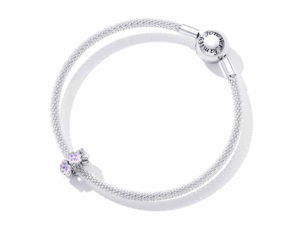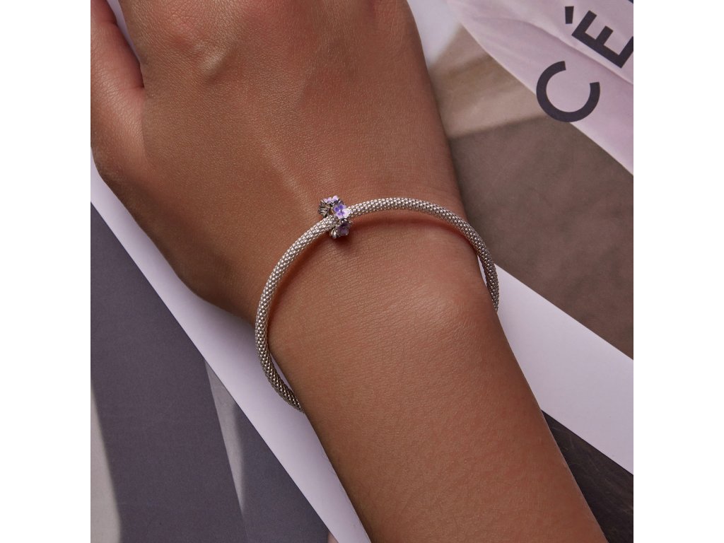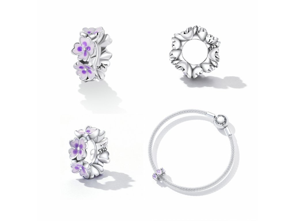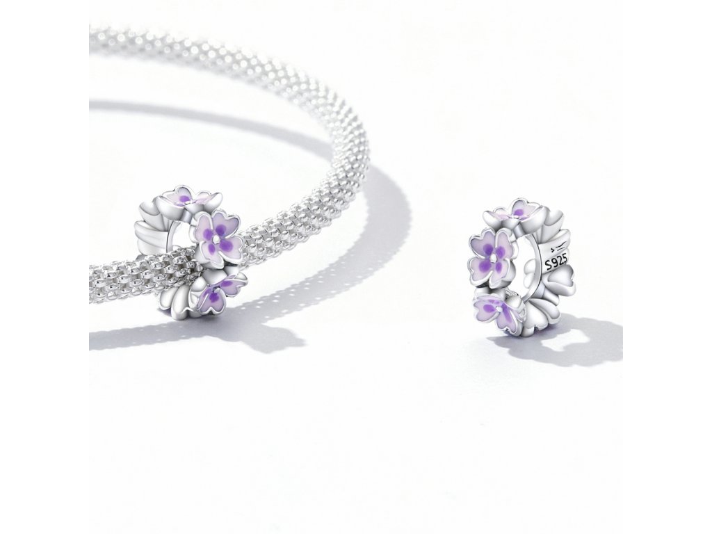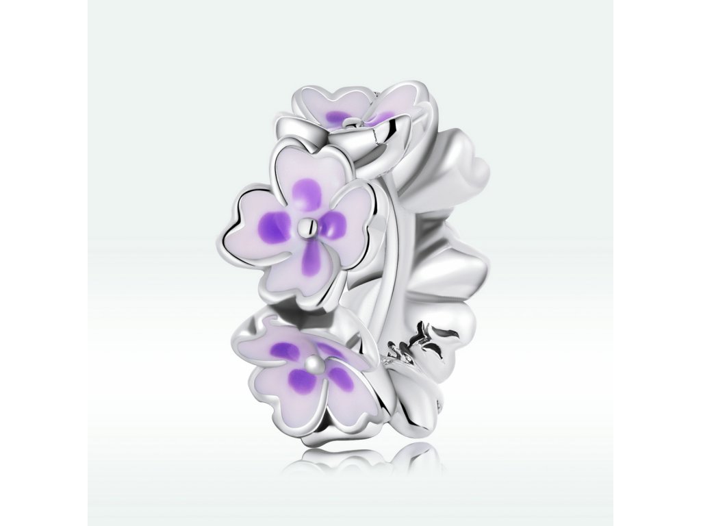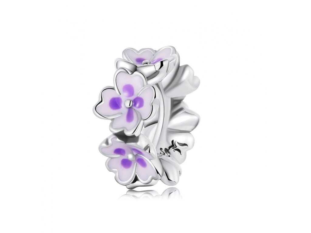 - Stříbrný přívěsek spacer v designu pole rozkvetlých květin zdobených ručně nanášenou fialovou glazurou. Originální design přívěsku, kvalitní zpracování a materiál, ručně dohotovené.