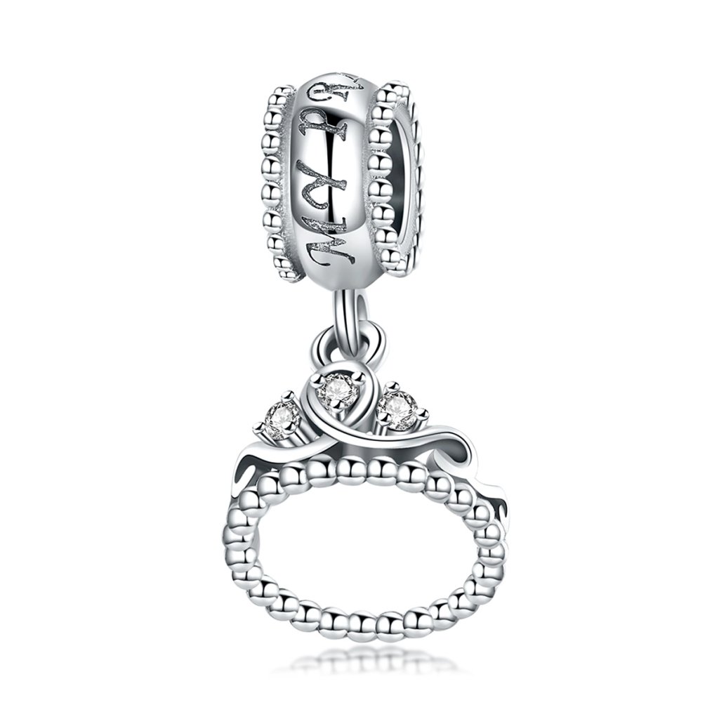 - Luxusní a propracovaný stříbrný visací přívěsek v designu princezniny korunky zdobený zirkony.