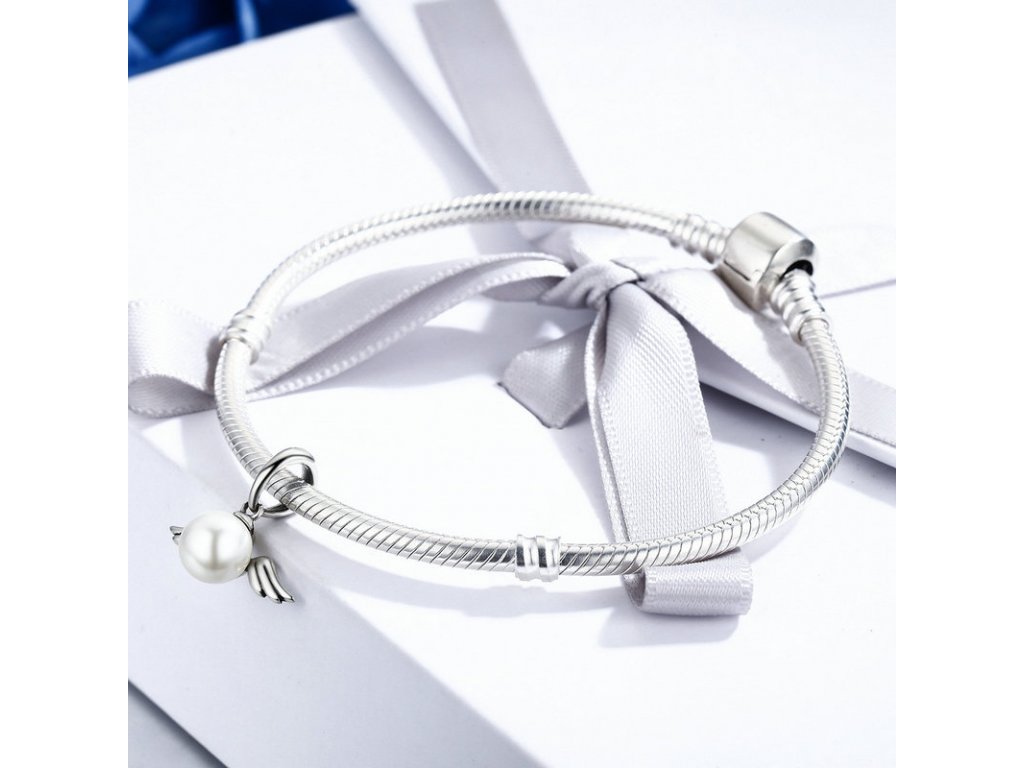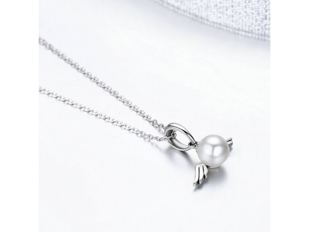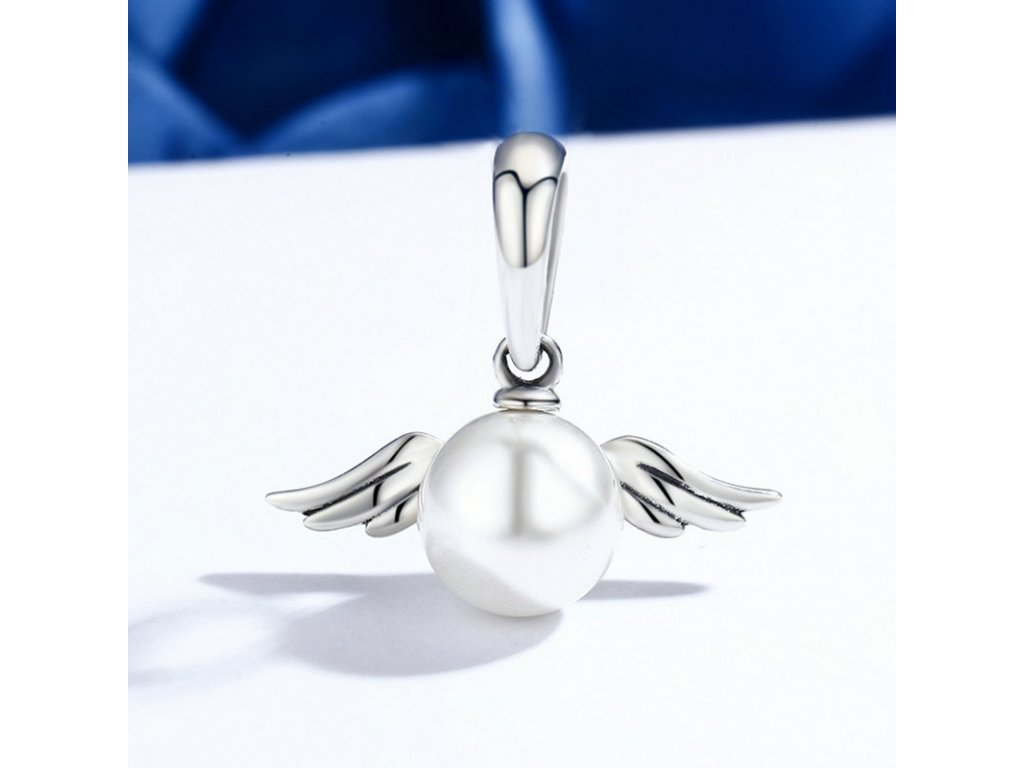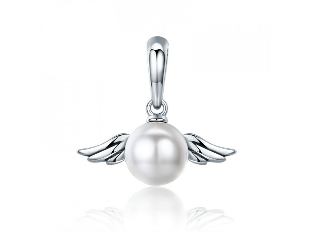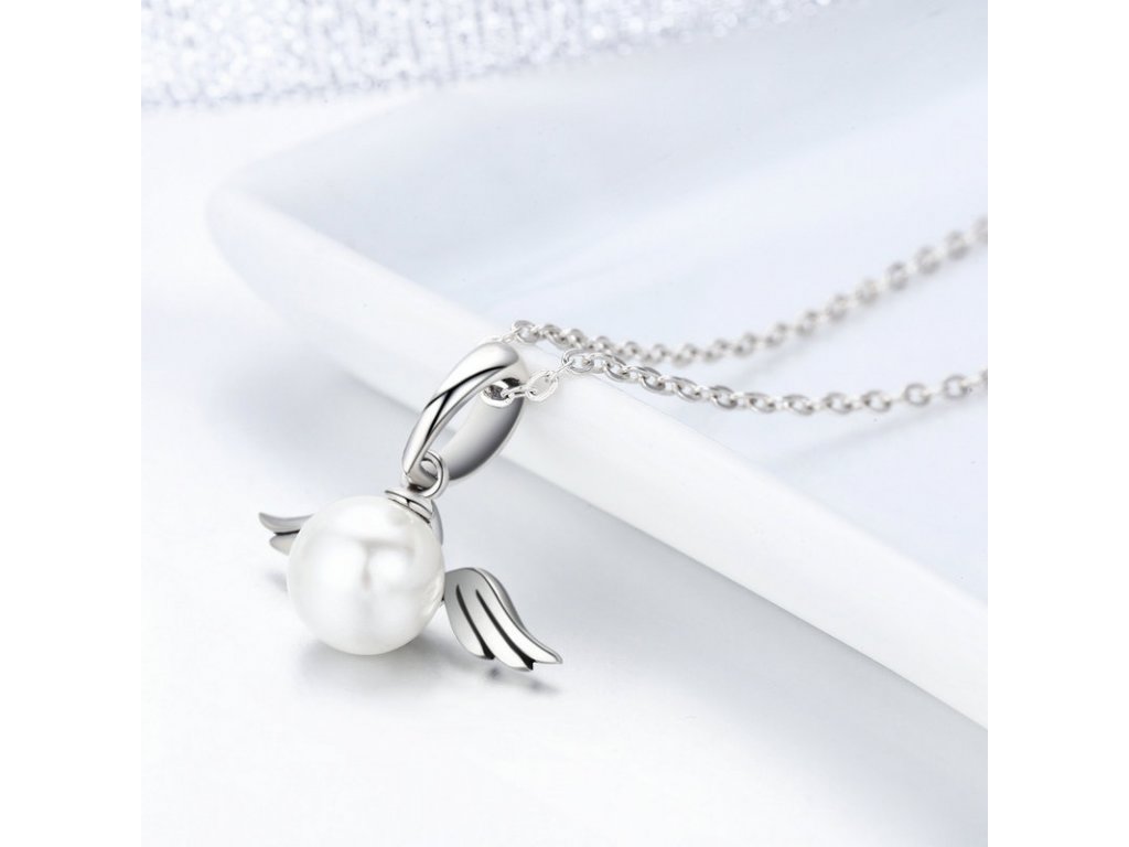 Luxusní a propracovaný přívěsek s jemnou perlou obohacenou andělskými křídly.