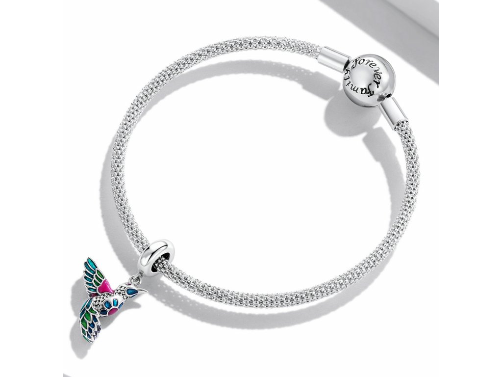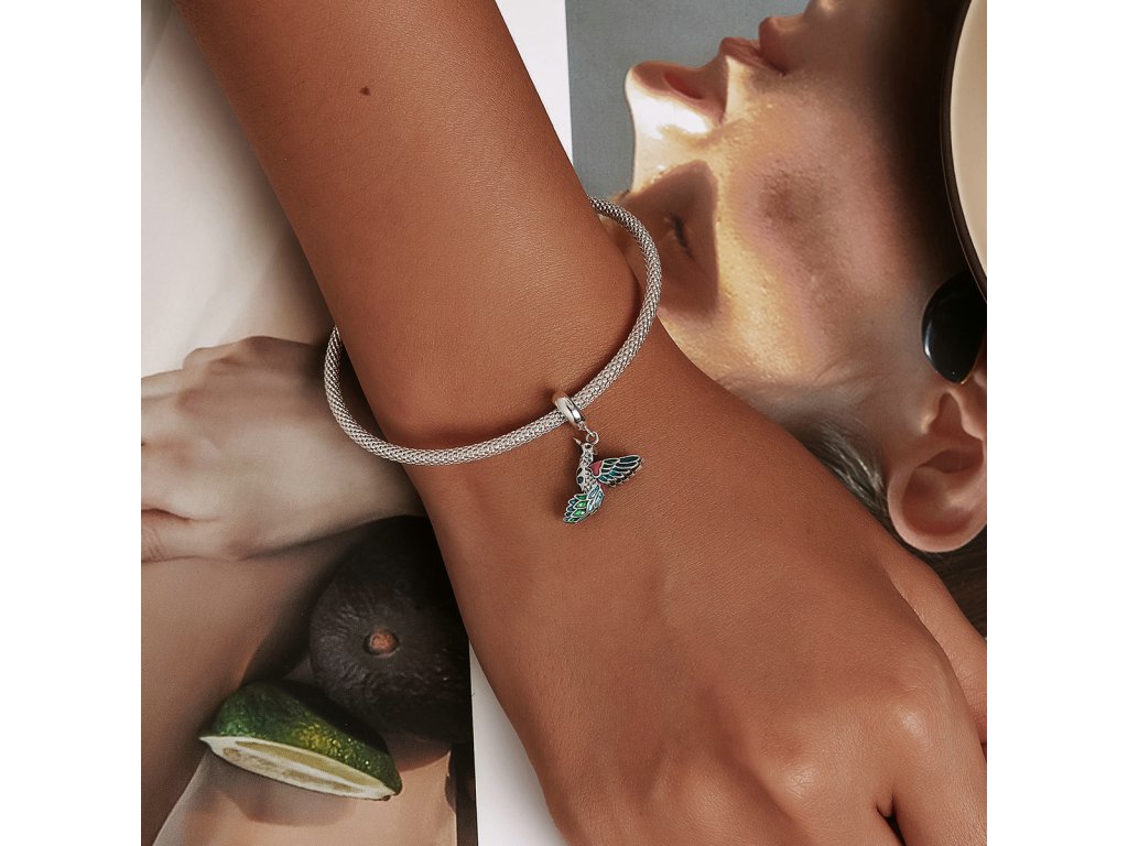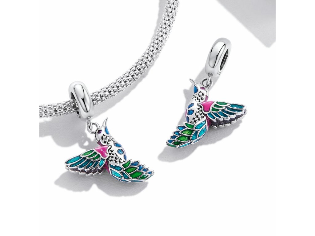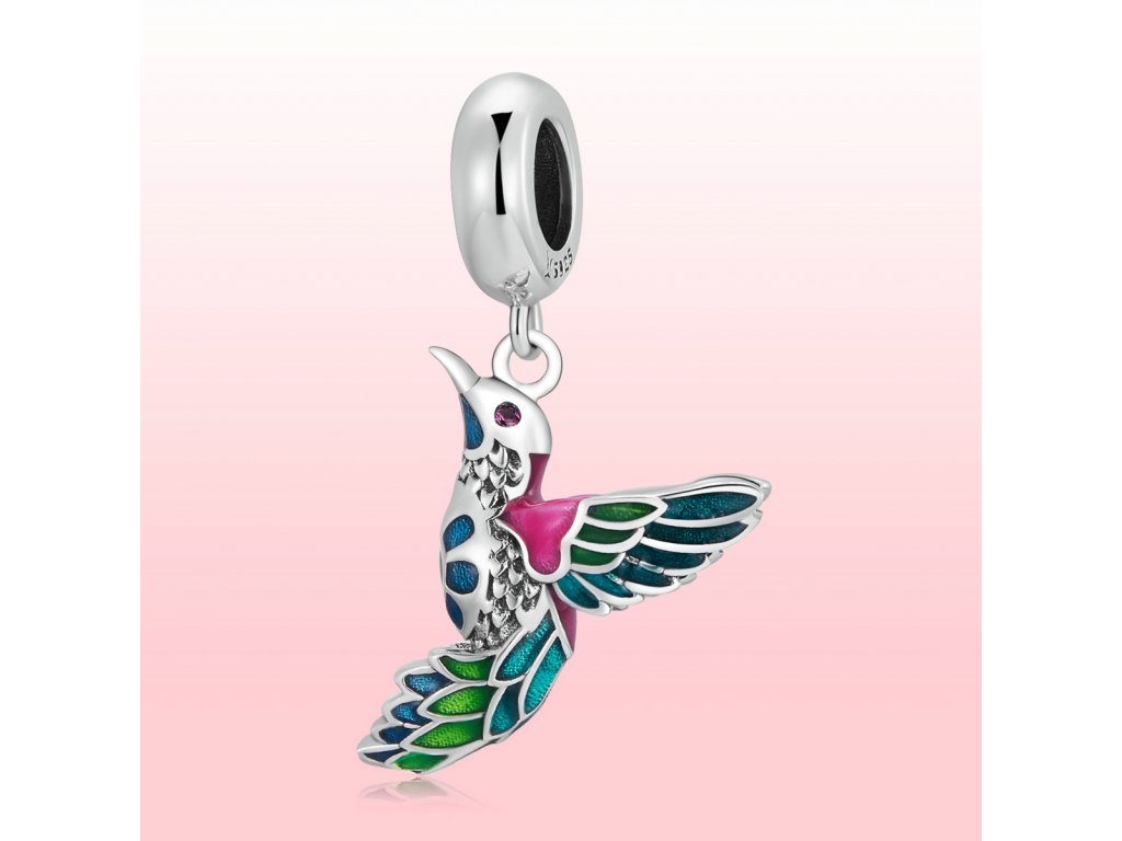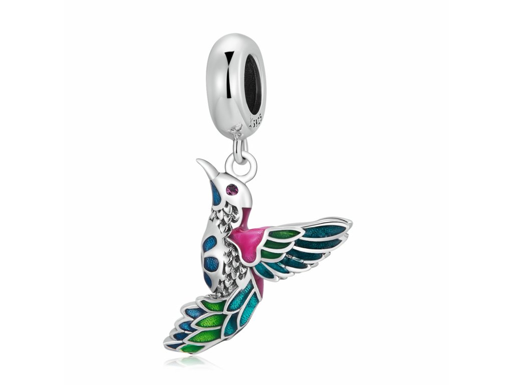 - Stříbrný visací přívěsek v designu krásného ptáčka ledňáčka zdobeného zirkony a ručně nanášenou barevnou glazurou. Originální design přívěsku, kvalitní zpracování a materiál, ručně dohotovené.