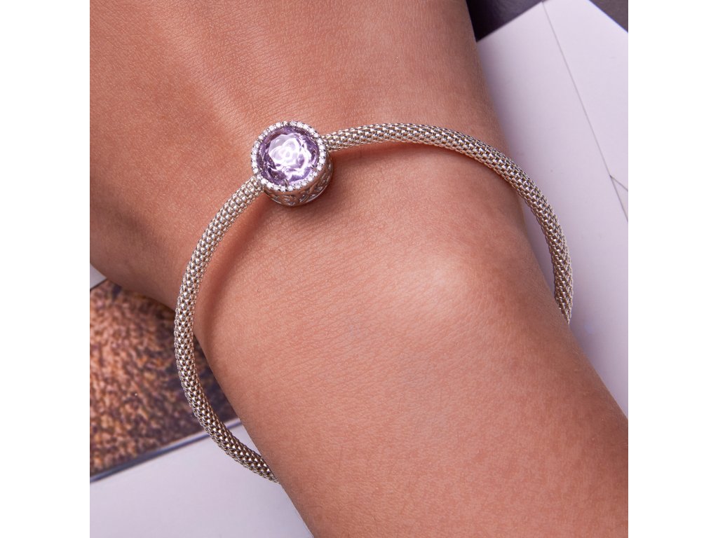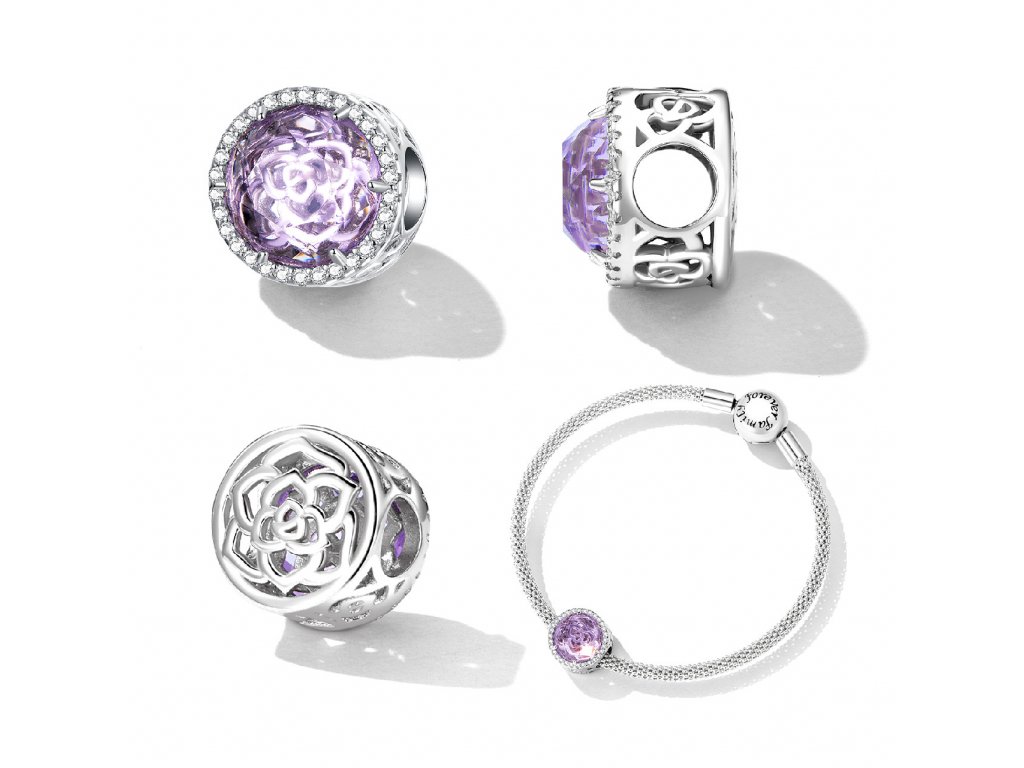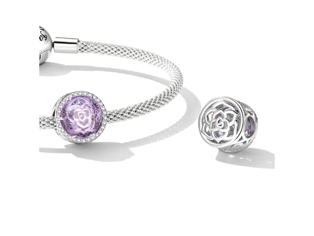- Stříbrný přívěsek v designu romantické růže zdobený velkým růžovým broušeným kamenem v podobě zirkonu. Přívěsek je také obohacen vyřezávanými růžemi na zadní straně a po stranách. Originální design přívěsku, kvalitní zpracování a materiál, ručně dohotovené.