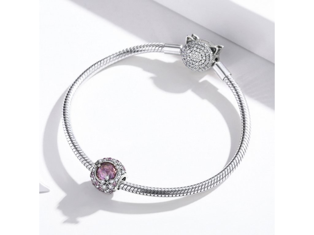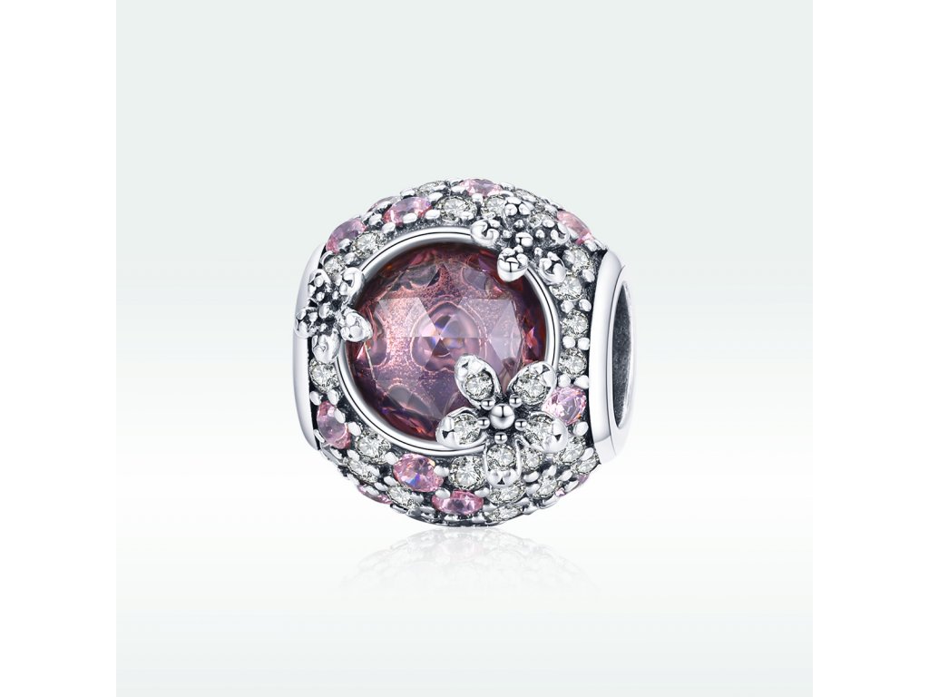 - Stříbrný přívěsek / korálek na náramek v designu romantických třešňových květů zdobených čirými a růžovými zirkony. Originální design přívěsku, kvalitní zpracování a materiál, ručně dohotovené.