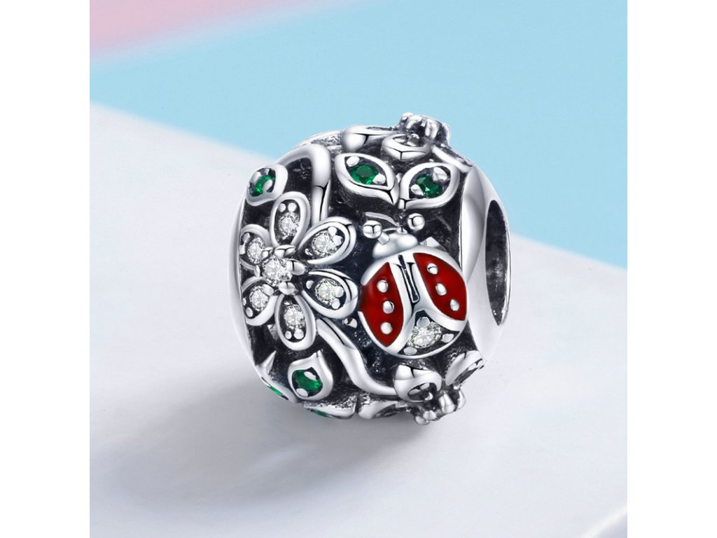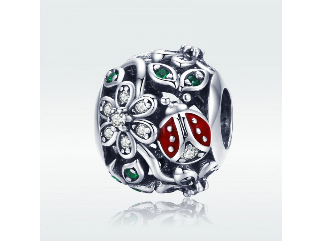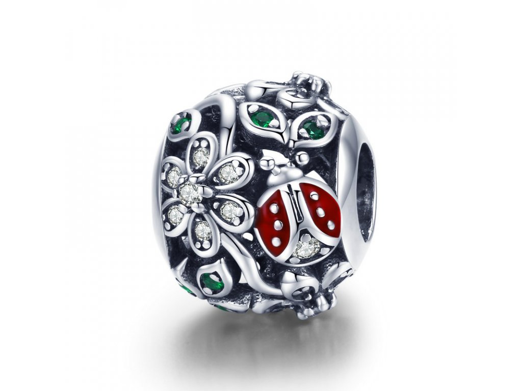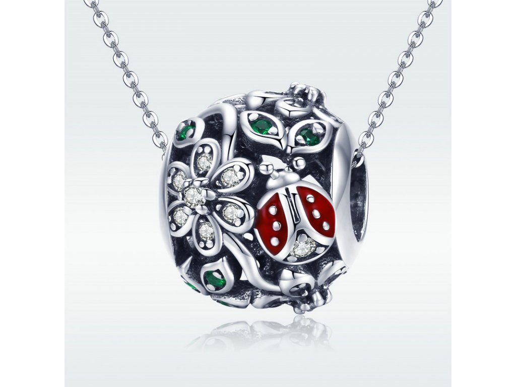 Luxusní a propracovaný stříbrný přívěsek v designu rozkvetlé louky zdobený zirkony a glazurou.