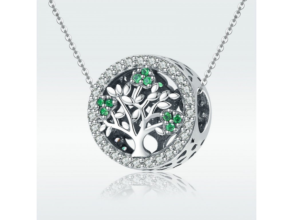 Luxusní a propracovaný stříbrný přívěsek v designu rozkvetlého stromu zdobený zirkony.