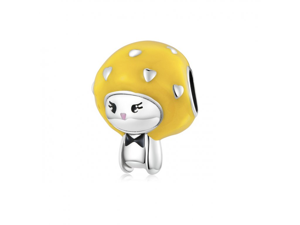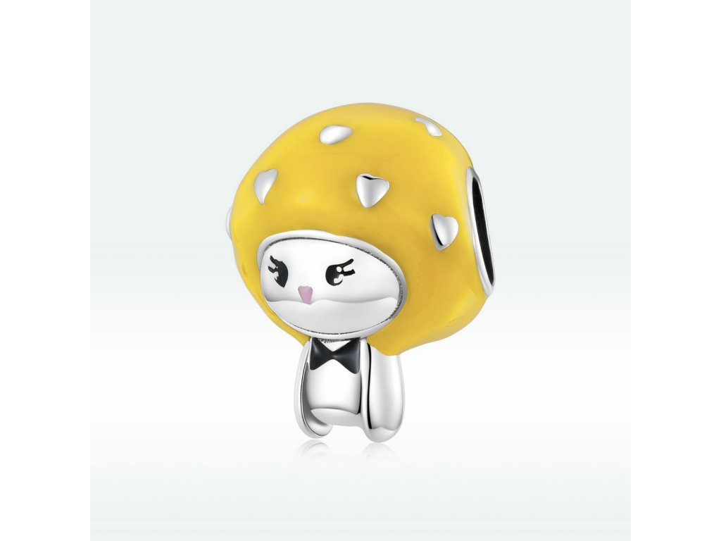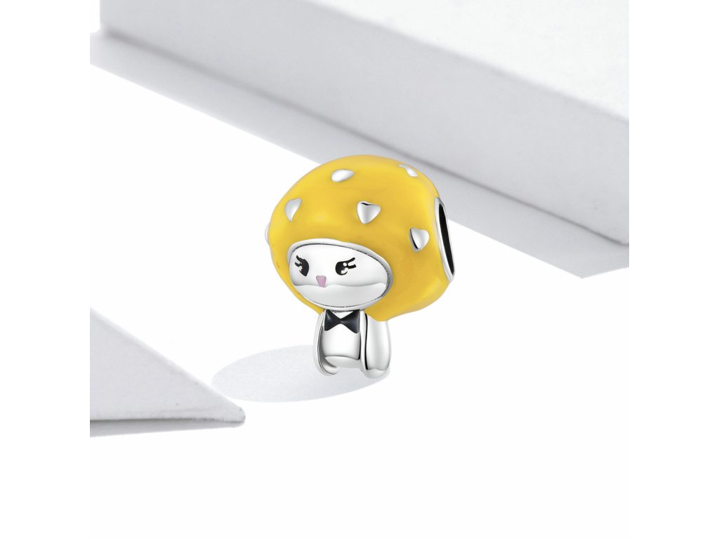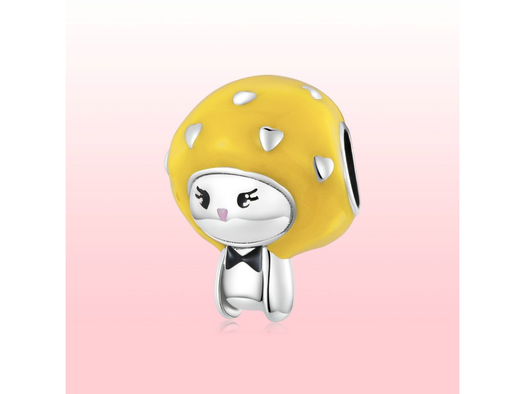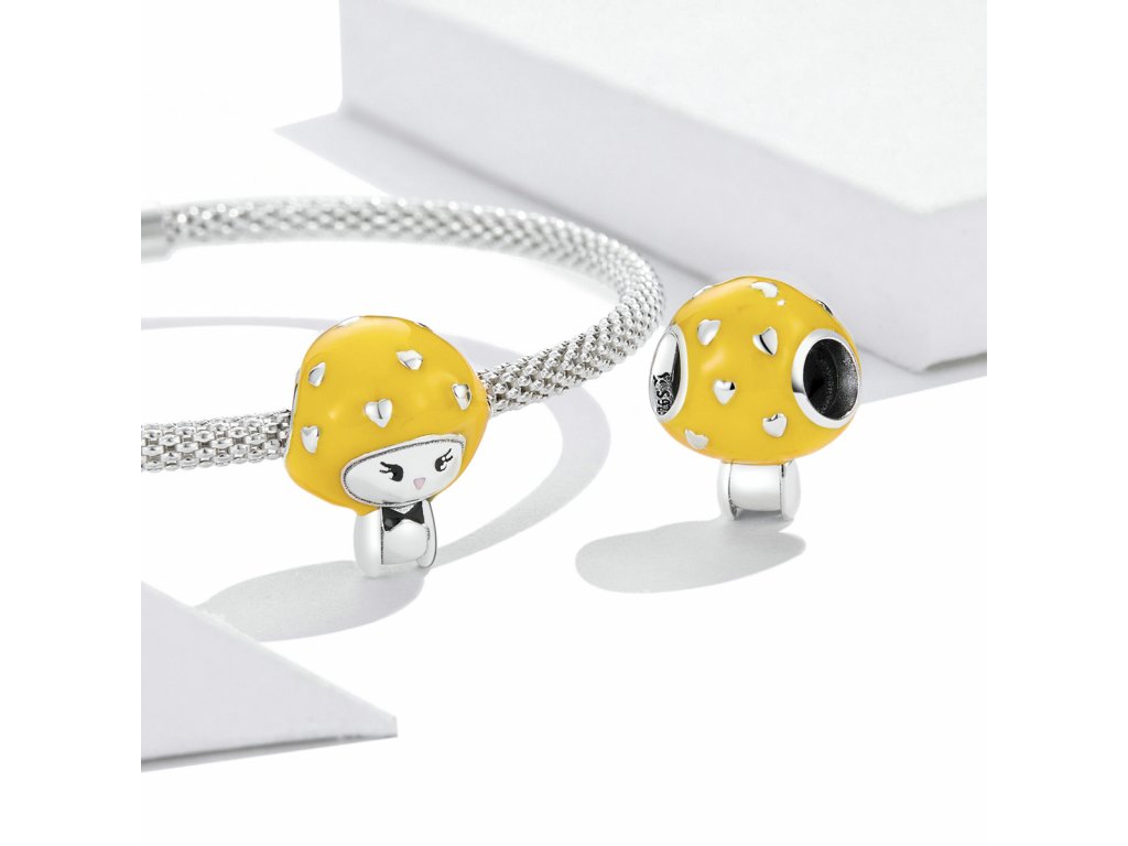 - Stříbrný přívěsek v designu lesní houby s roztomilým obličejem zdobená srdíčky a ručně nanášenou žlutou glazurou. Originální design přívěsku, kvalitní zpracování a materiál, ručně dohotovené.