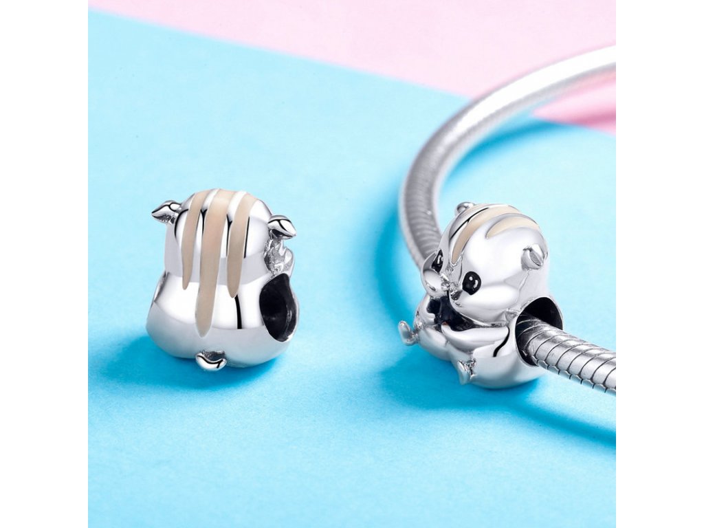 Krásný stříbrný přívěsek ve tvaru roztomilého křečka dekorovaného barevnou glazurou. Originální design přívěsku, kvalitní zpracování a materiál, ručně dohotovené.