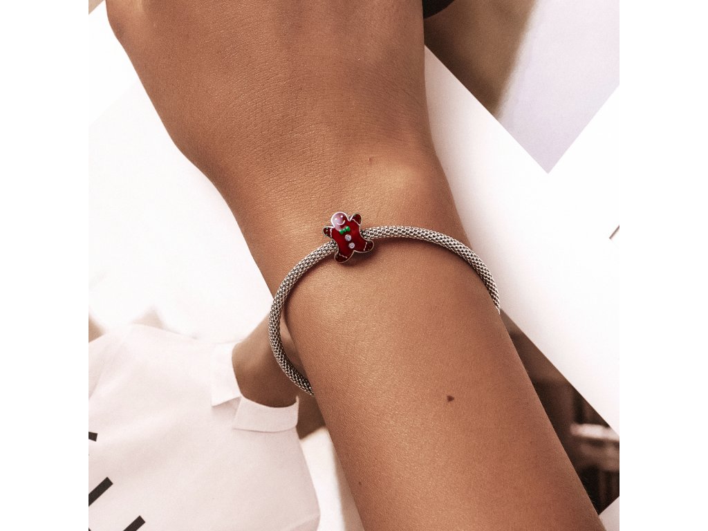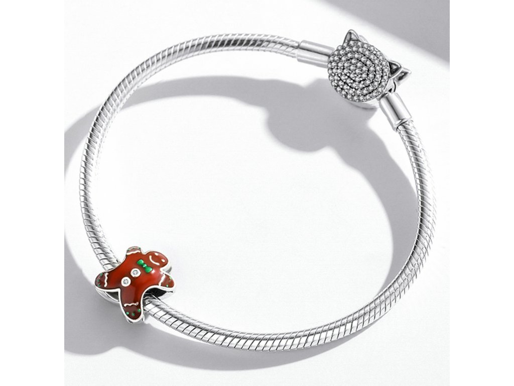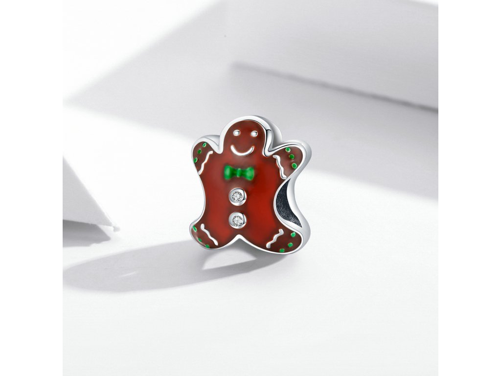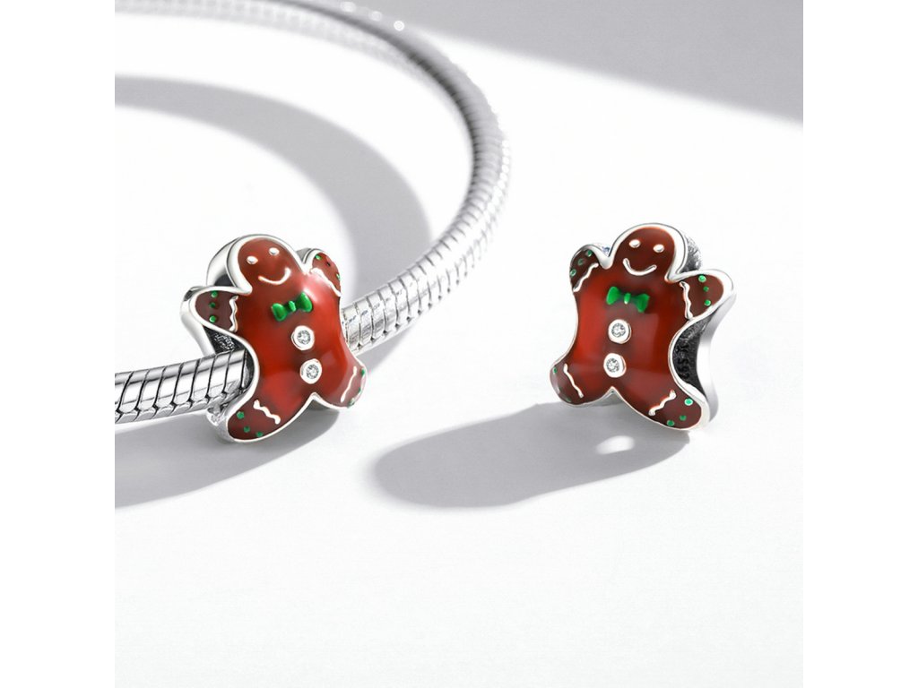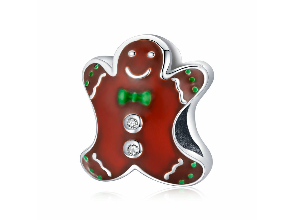 - Stříbrný přívěsek v designu Roztomilého perníčku zdobeného ručně nanášenou hnědou glazurou. Přívěsek je také zdoben ručně posázenými čirými třpytivými zirkony. Originální design přívěsku, kvalitní zpracování a materiál, ručně dohotovené.