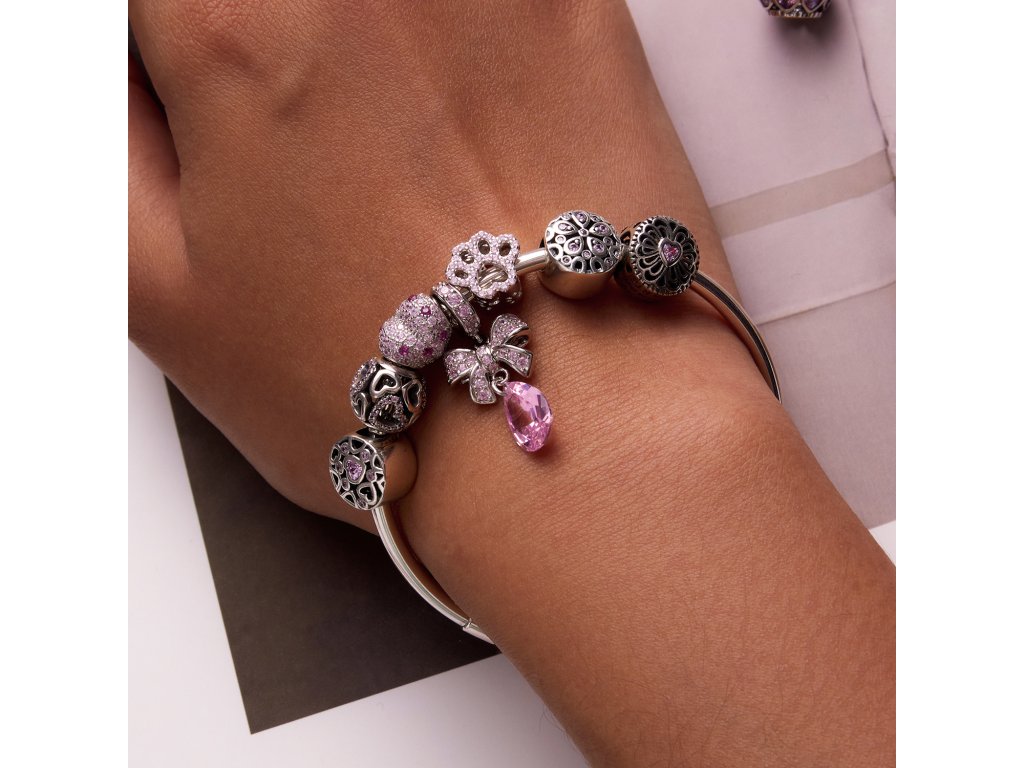 - Stříbrný přívěsek v designu růžové krystalické květiny, zdobený růžovými zirkony.