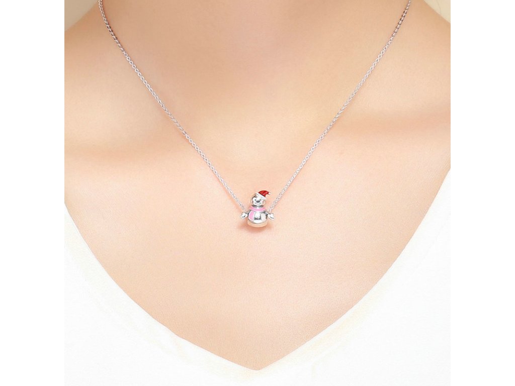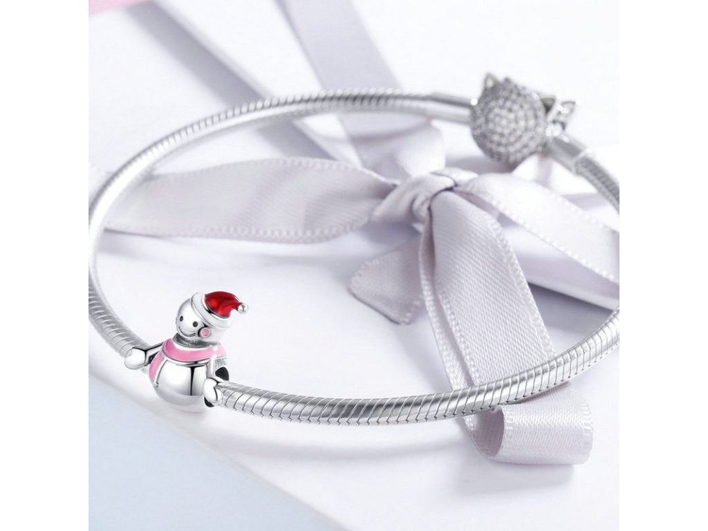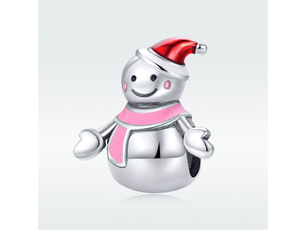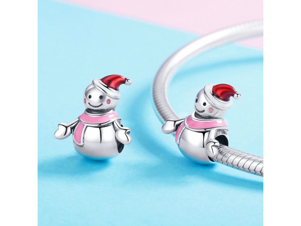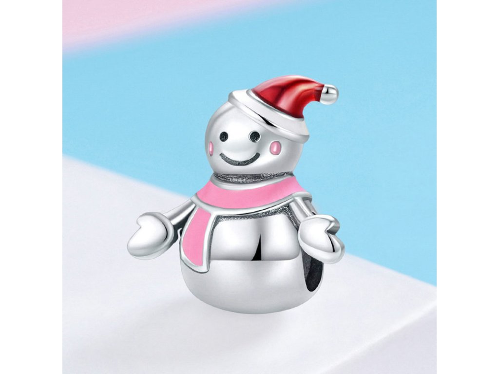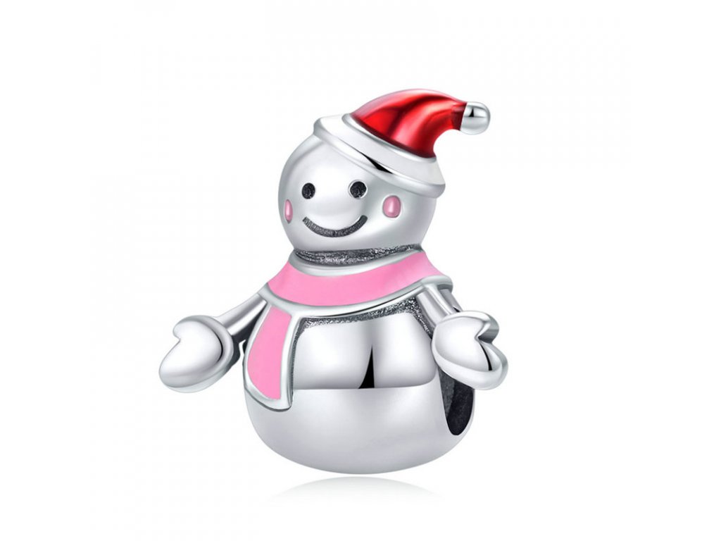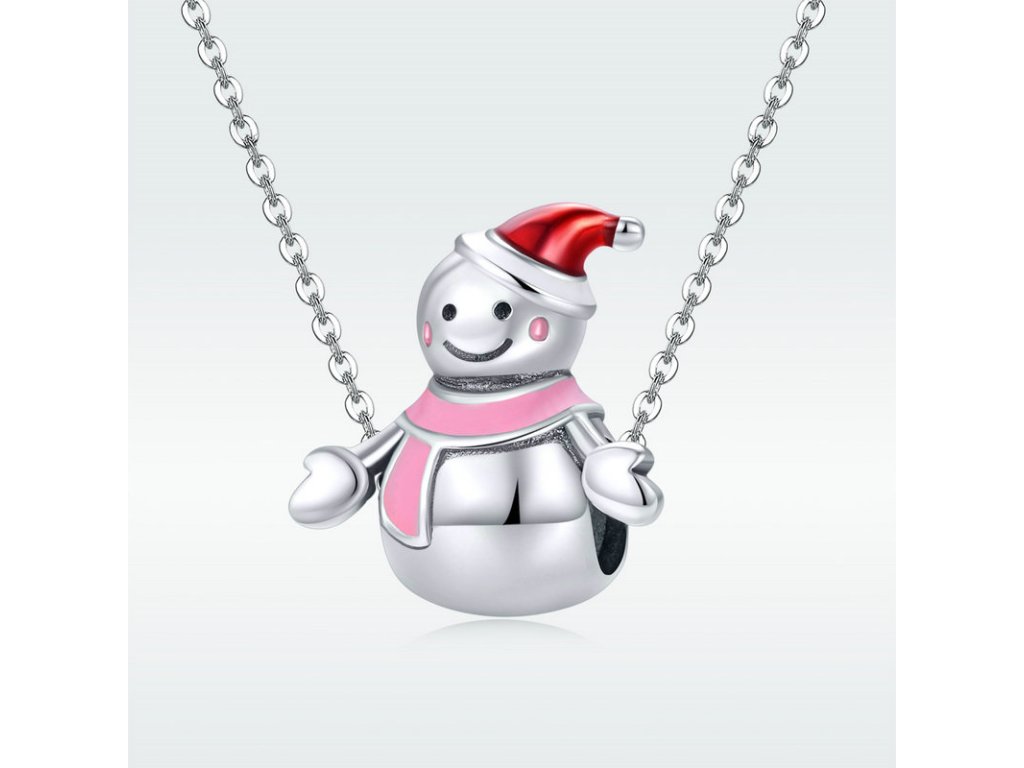 - Luxusní a propracovaný stříbrný přívěsek v designu růžového sněhuláka zdobený glazurou.