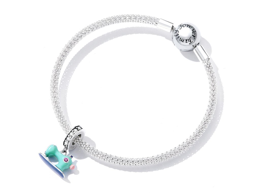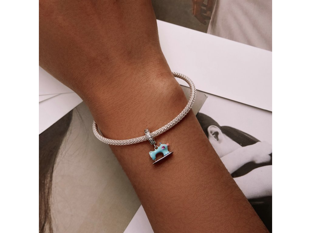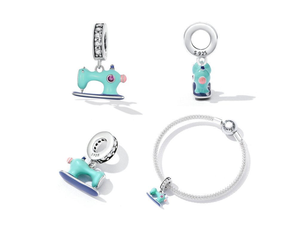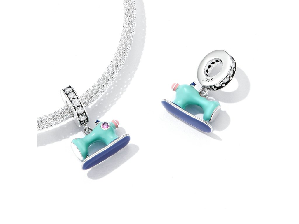 - Stříbrný visací přívěsek v designu milovaného šicího stroje zdobeného třpytivými zirkony a ručně nanášenou barevnou glazurou. Originální design přívěsku, kvalitní zpracování a materiál, ručně dohotovené.