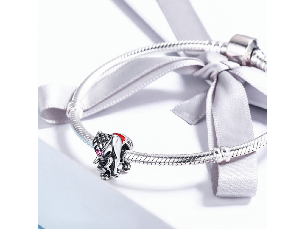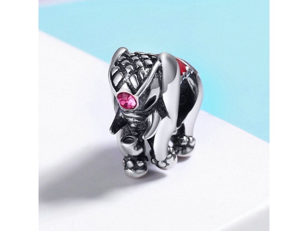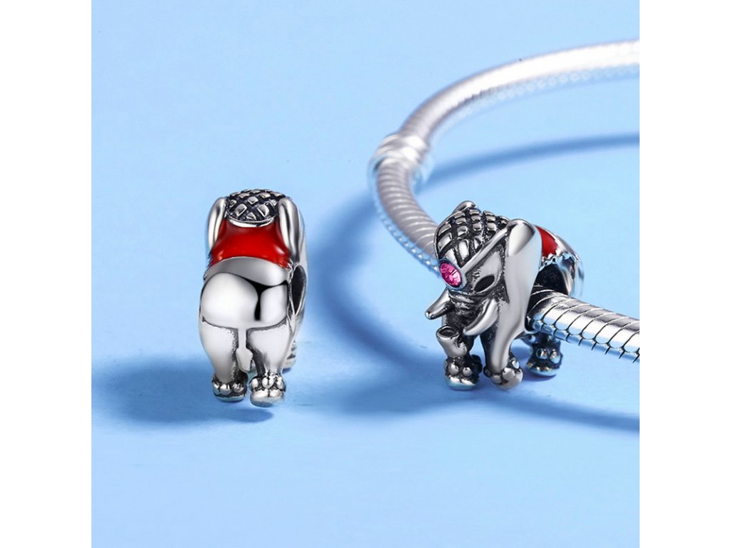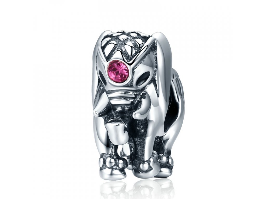 Propracovaný přívěsek v designu slona obohaceného růžovým zirkonem a ručně nanášenou červenou glazurou. Stříbro ryzost 925/1000, zirkon, glazura. Povrchová úprava: platinováno. Průměr průvleku: 4 mm. DODÁVÁME BALENÉ V DÁRKOVÉ KRABIČCE - ZDARMA.
