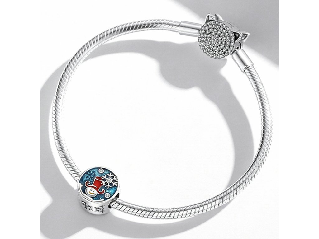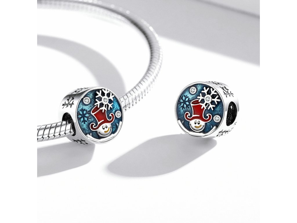 - Stříbrný přívěsek v designu roztomilého sněhuláčka s červenou čepicí. Přívěsek je zdoben ručně nanášenou barevnou glazurou, čirými třpytivými zirkony a smaltovanými vločkami po celém svém obvodu. Originální design přívěsku, kvalitní zpracování a materiál, ručně dohotovené.