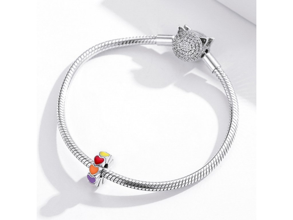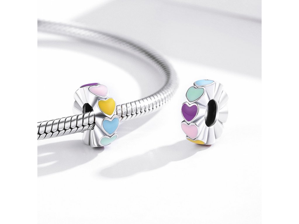 - Stříbrný přívěsek nebo-li spacer obohacený milovanými srdíčky zdobenými ručně nanášenou barevnou glazurou. Originální design přívěsku, kvalitní zpracování a materiál, ručně dohotovené.