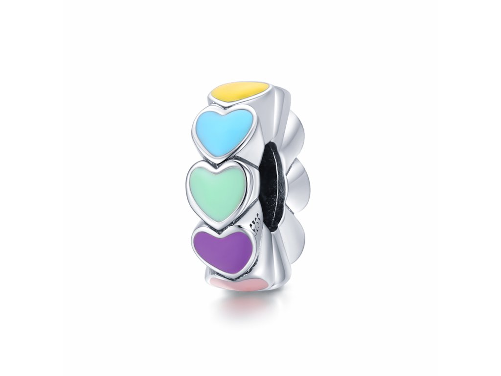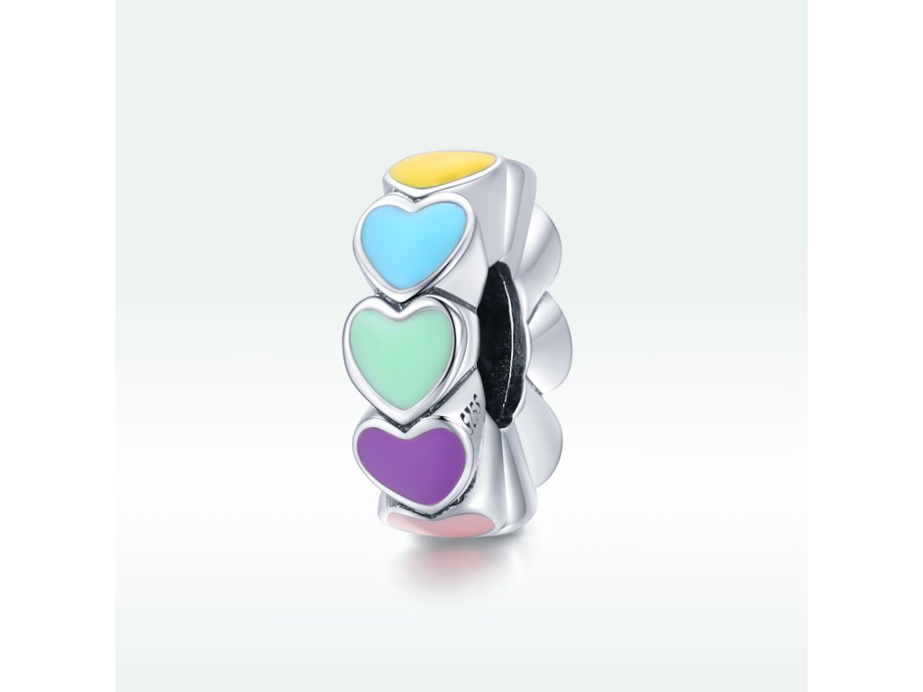 Elenys stříbrný přívěsek Spacer Pole barevných srdcí