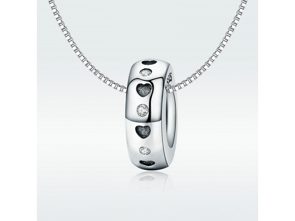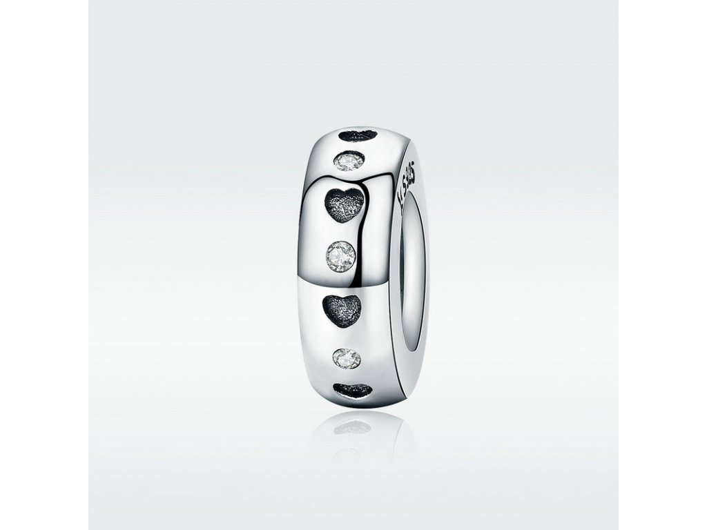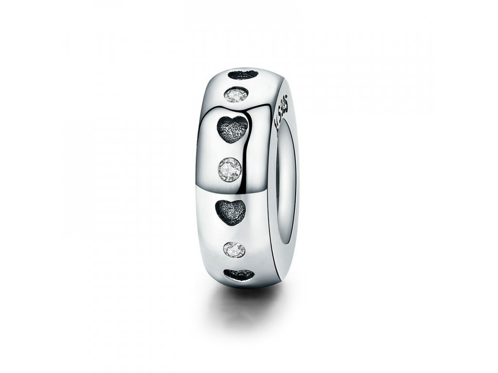 Luxusní a propracovaný přívěsek nebo-li spacer zdobený krásnými srdíčky a třpytivými čirými zirkony.