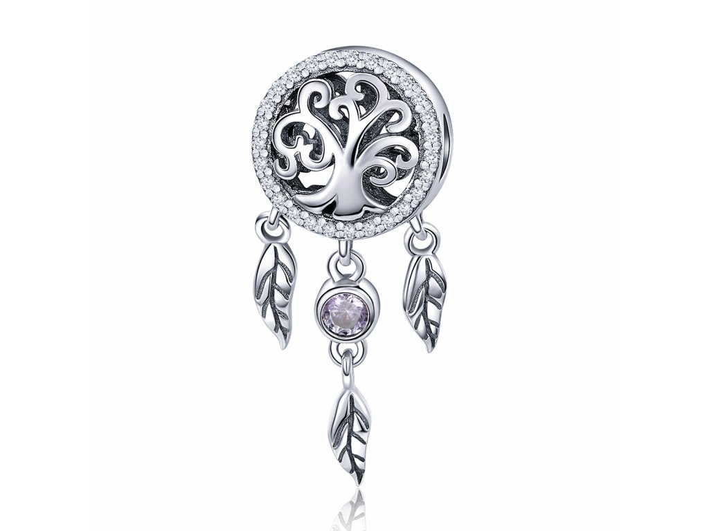 Luxusní a propracovaný přívěsek v designu známého spirituálního lapače snů zdobeného třpytivými čirými kameny.