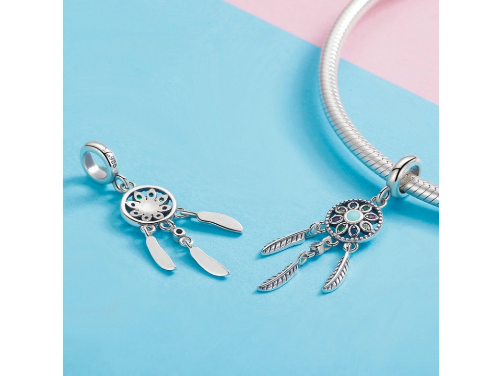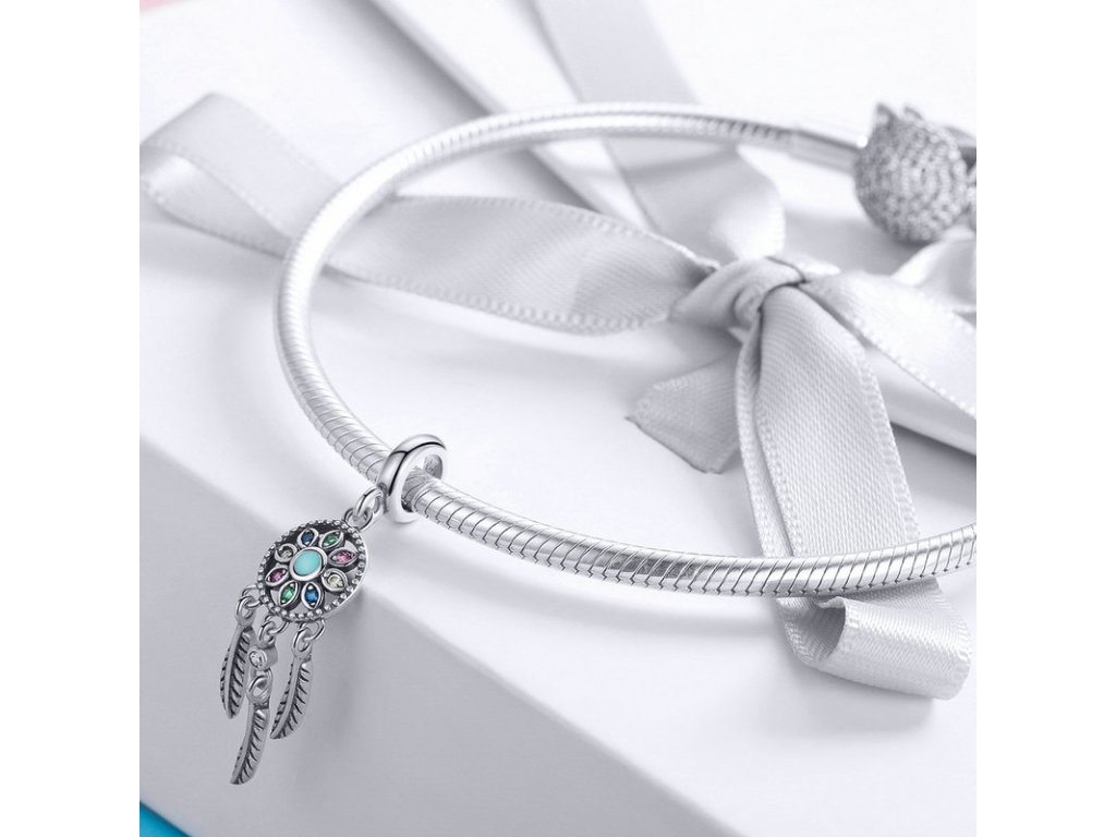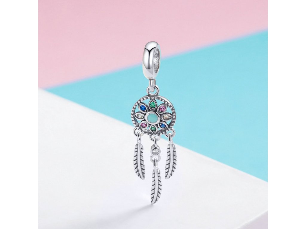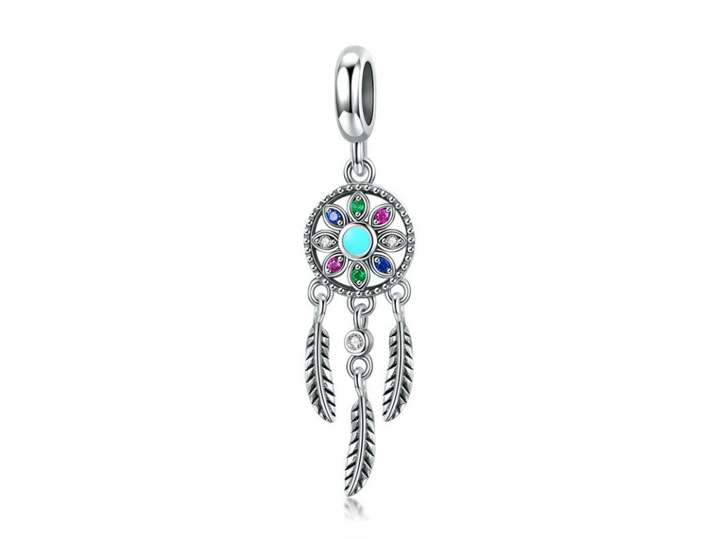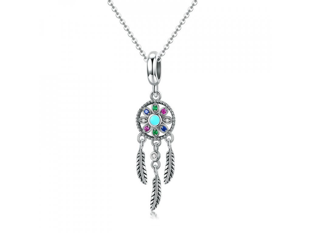 Luxusní a propracovaný stříbrný visací přívěsek v designu spirituálního lapače snů zdobený barevnými zirkony a glazurou. Originální design přívěsku, kvalitní zpracování a materiál, ručně dohotovené. Obdarujte sebe nebo své blízké tímto stříbrným kouzlem. Slaďte přívěsky s ostatními šperky značky Royal Fashion a vytvořte tak neodolatelný set.