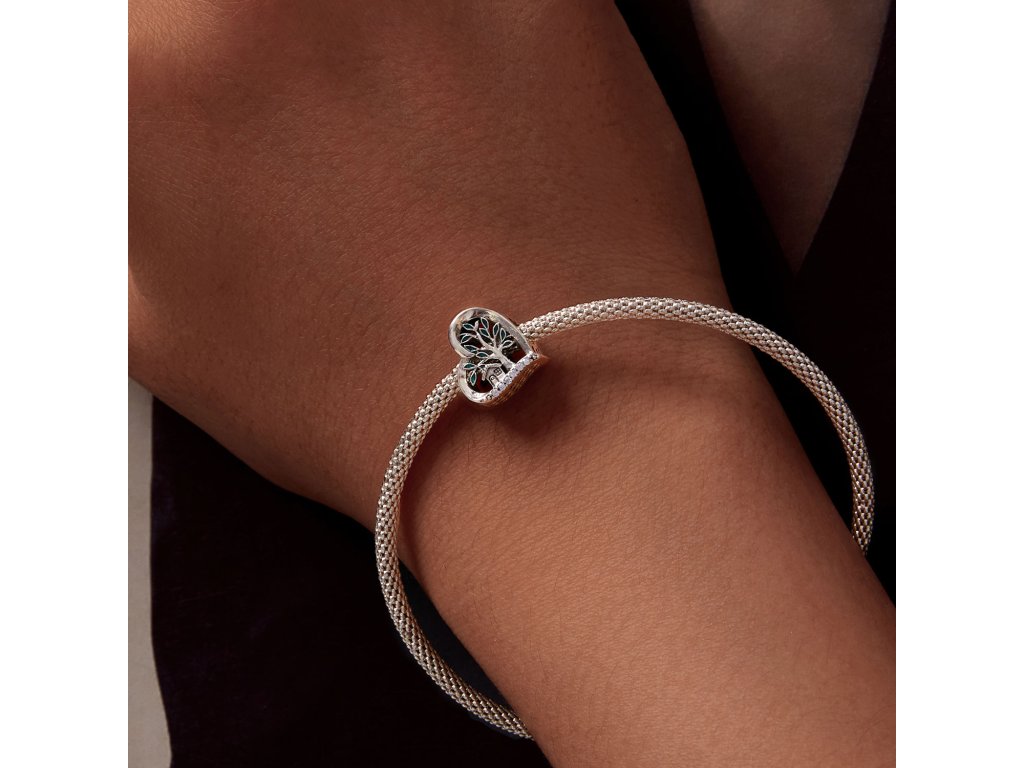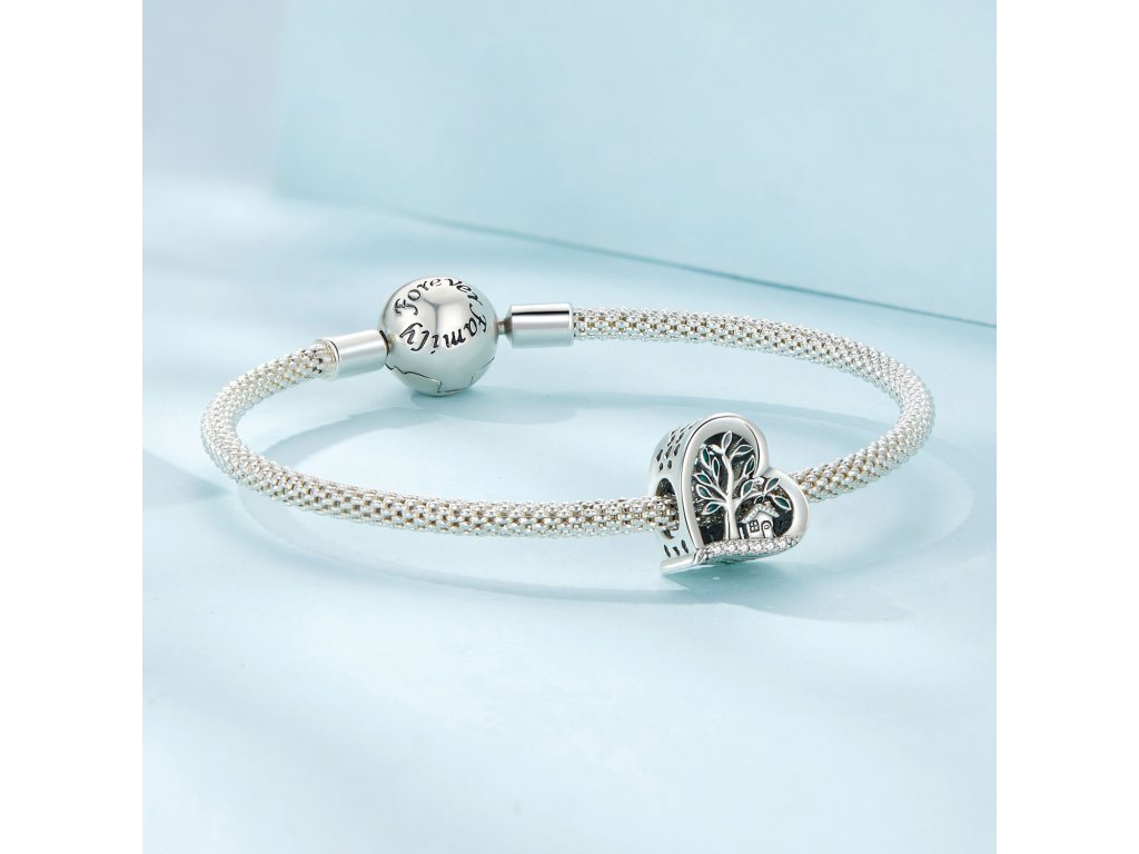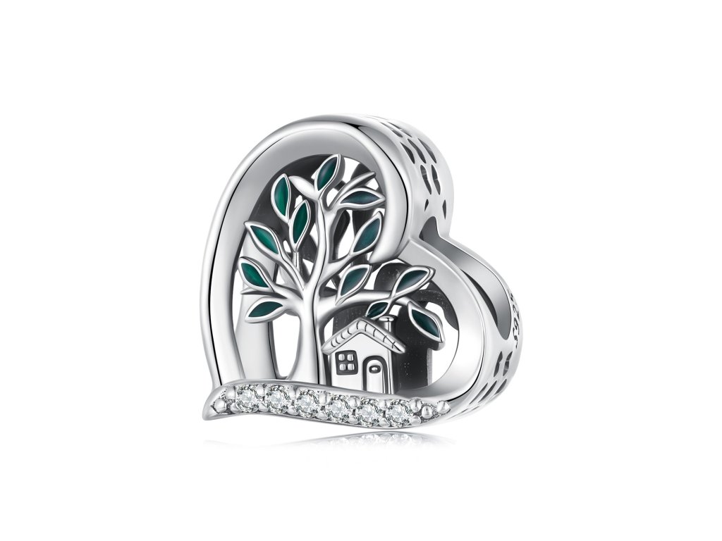 - Stříbrný přívěsek srdce domova zdobený zirkony a zelenou glazurou.