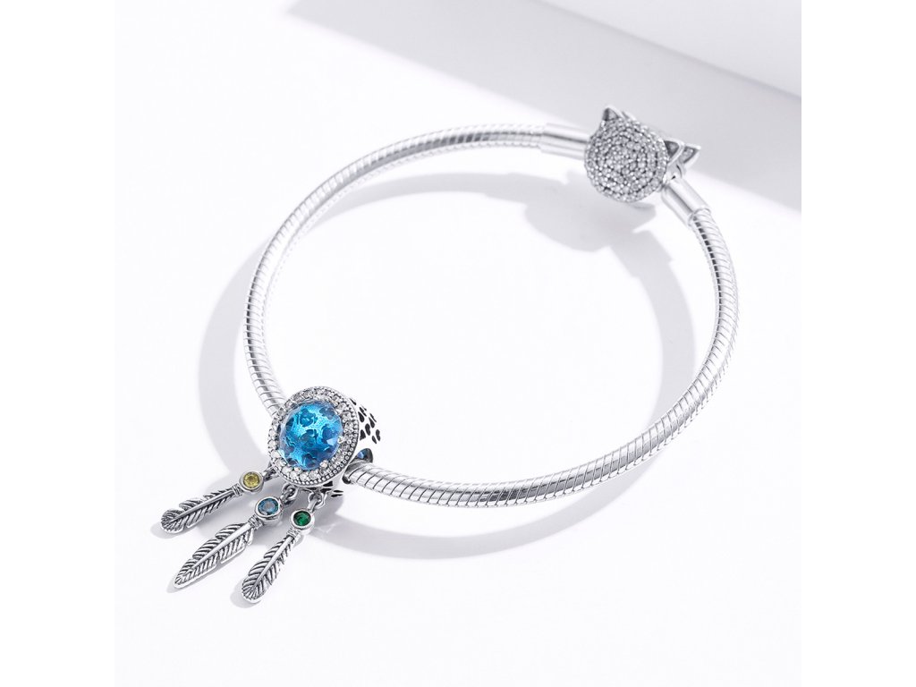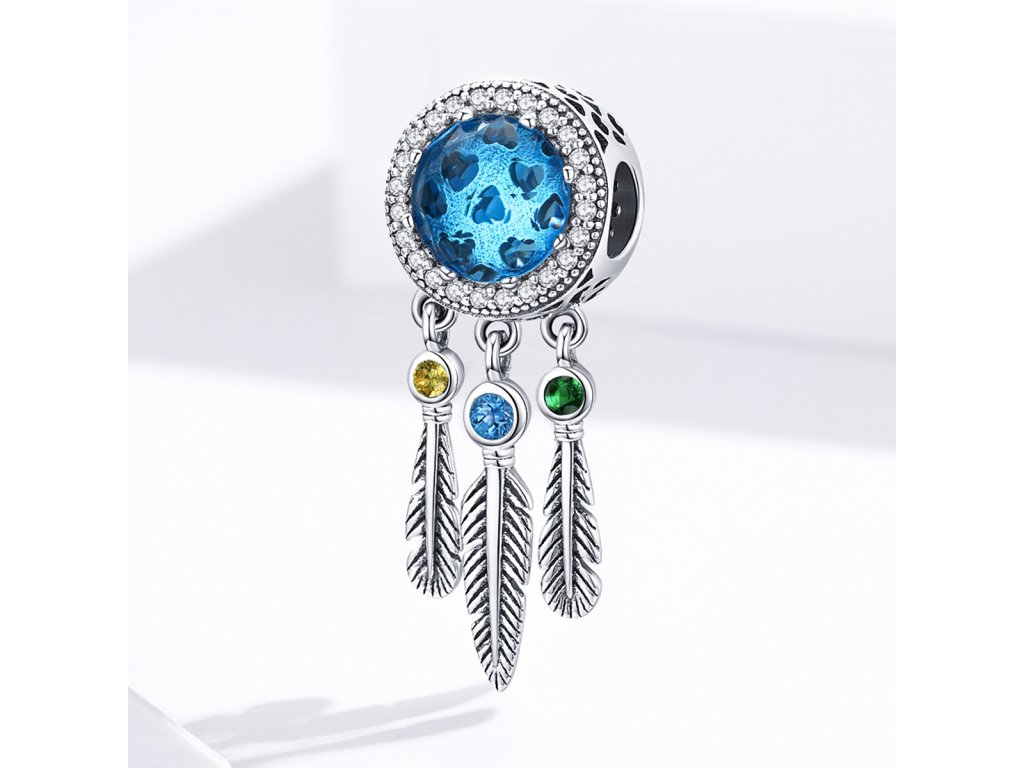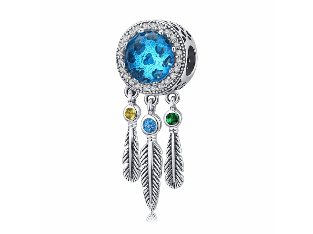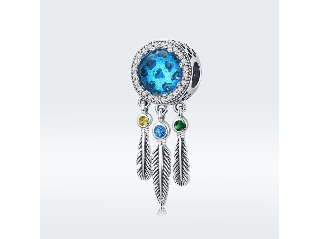 - Stříbrný přívěsek v designu Lapače snů zdobeného smaltovanými peříčky a barevnými zirkony. Originální design přívěsku, kvalitní zpracování a materiál, ručně dohotovené.