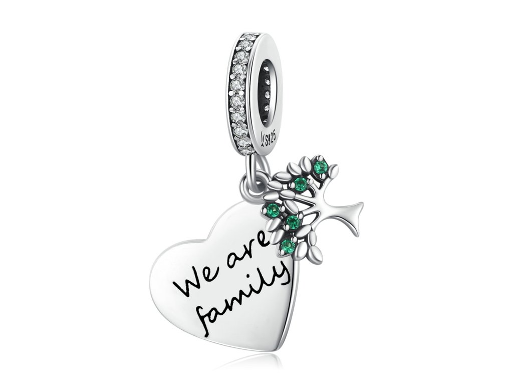 - Stříbrný visací přívěsek strom života s nápisem "We are family"
