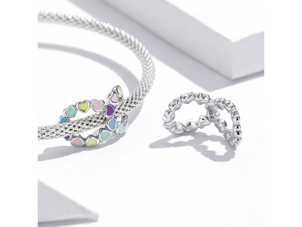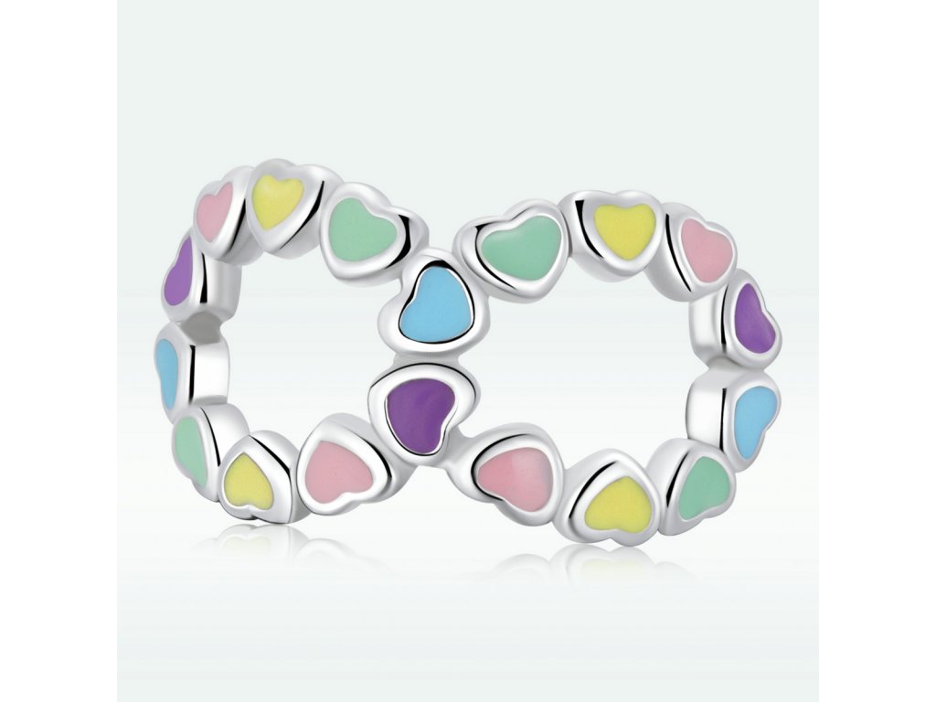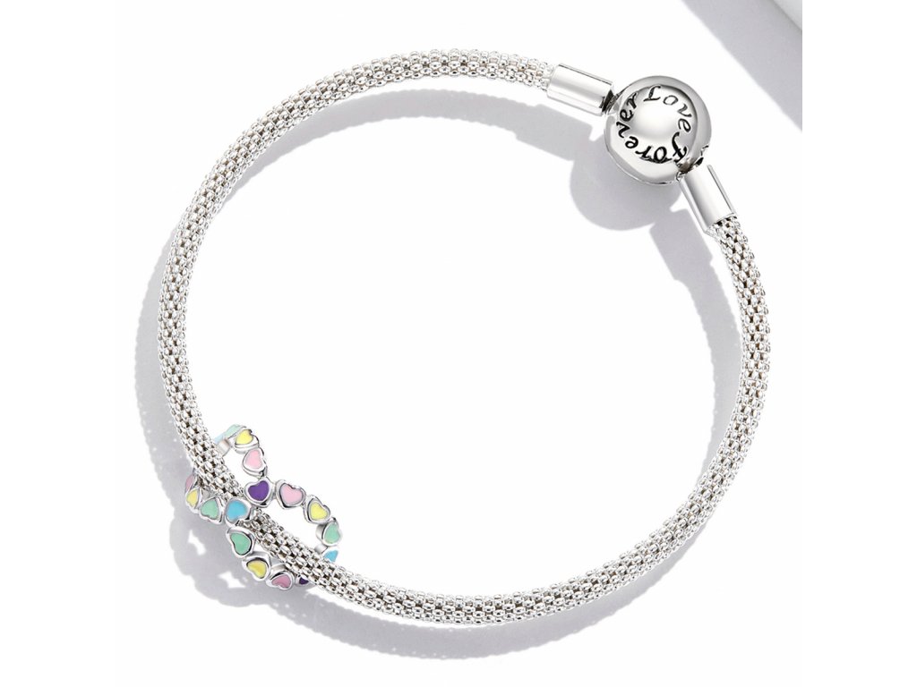 - Stříbrný přívěsek v designu symbolu nekonečné lásky zdobený srdíčky s ručně nanášenou barevnou glazurou. Originální design přívěsku, kvalitní zpracování a materiál, ručně dohotovené.