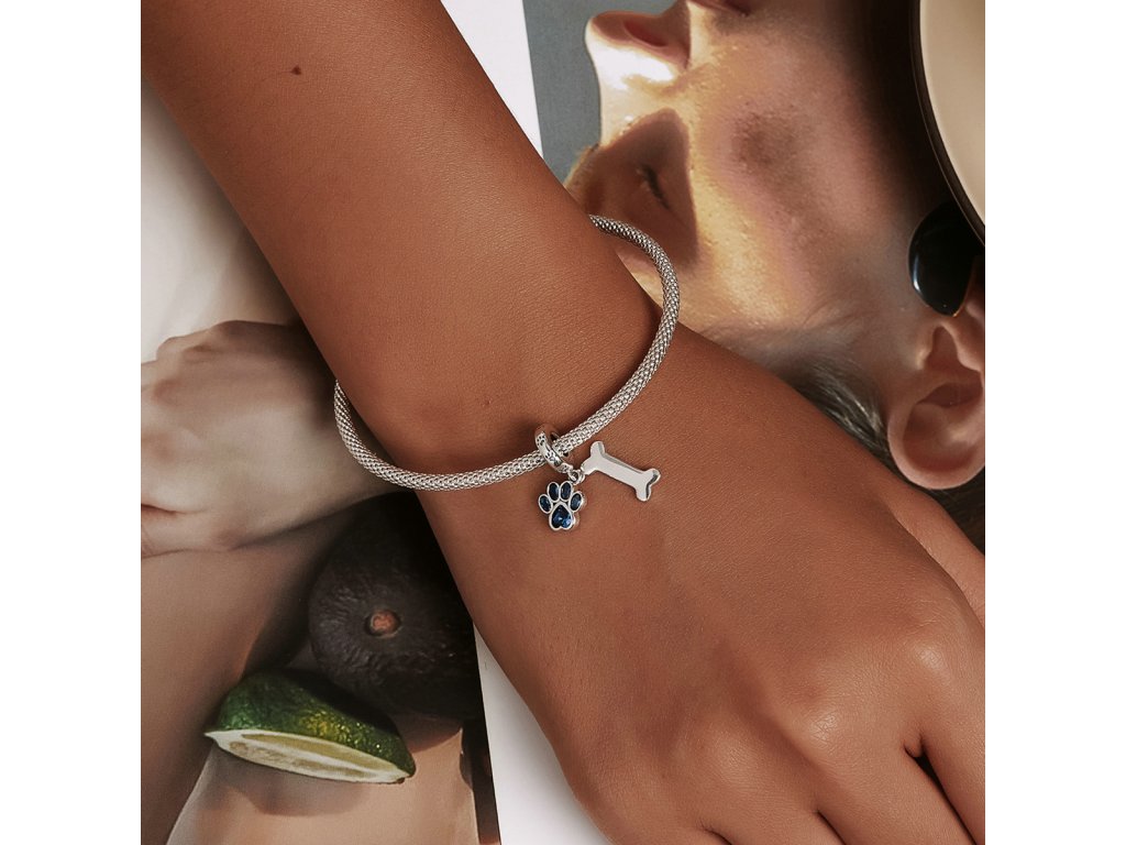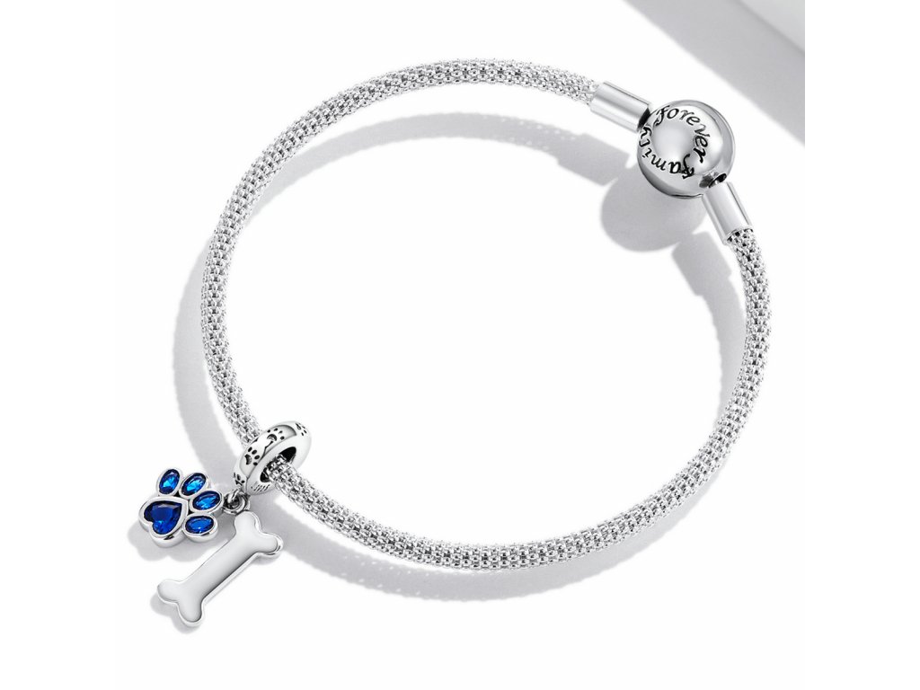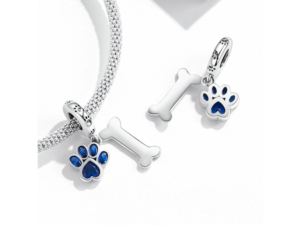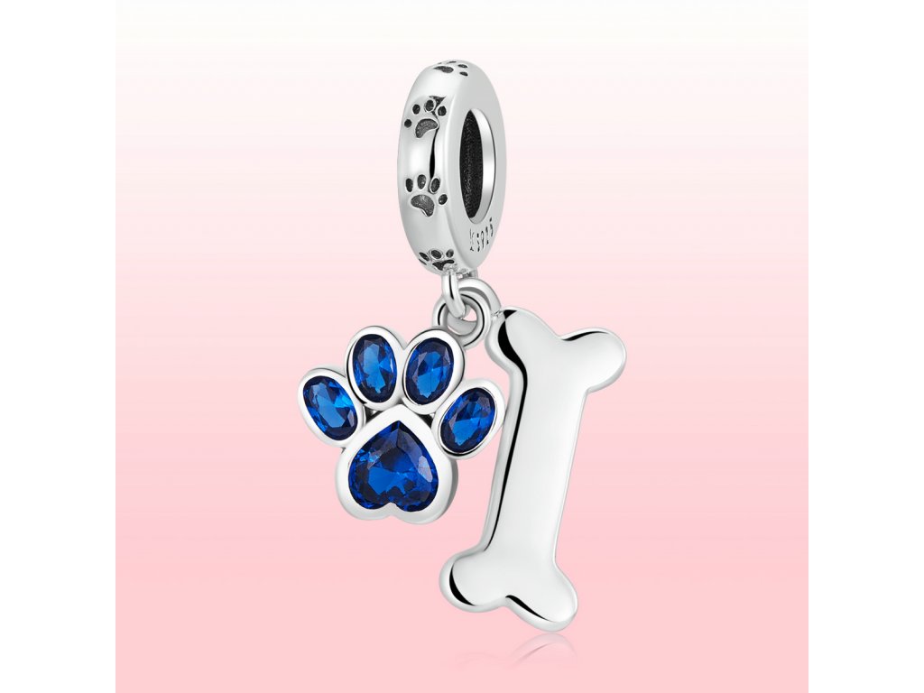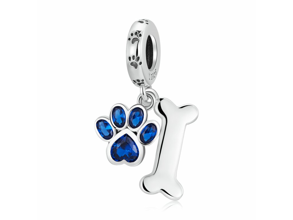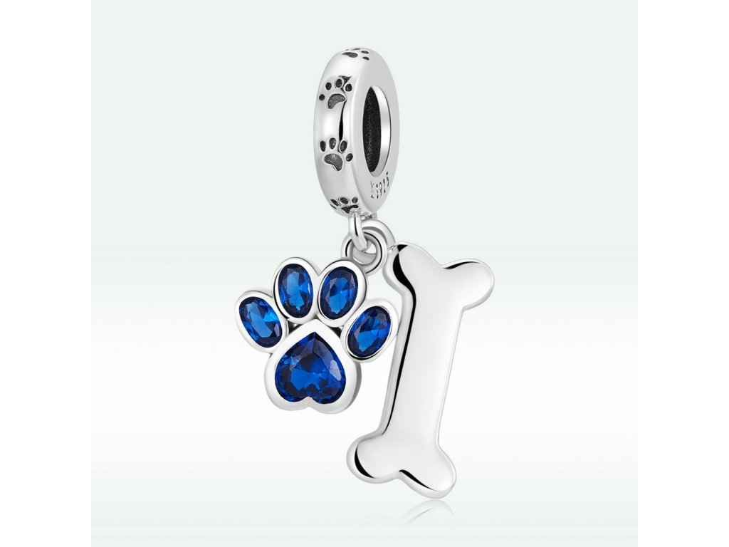 - Stříbrný visací přívěsek v designu tlapky / packy s kostičkou zdobený tmavě modrými broušenými zirkony. Originální design přívěsku, kvalitní zpracování a materiál, ručně dohotovené.