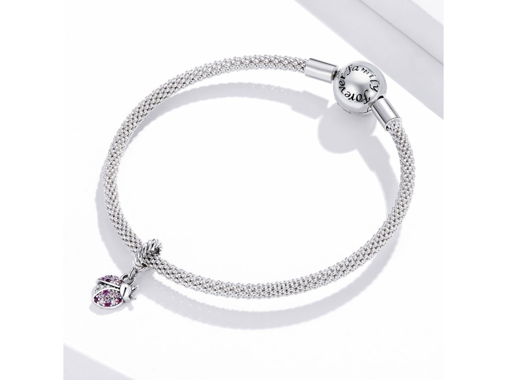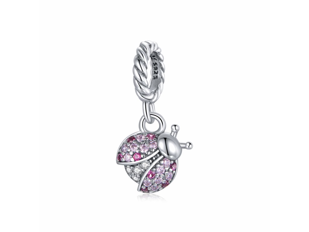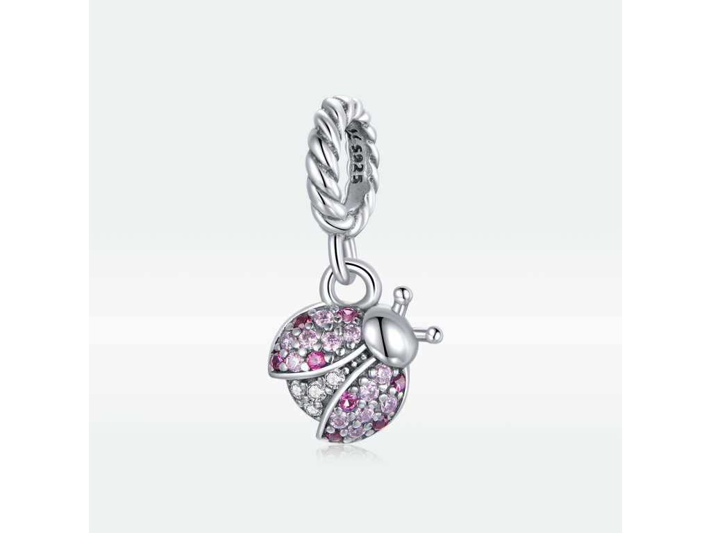 - Stříbrný visací přívěsek v designu krásné berušky zdobené třpytivými kameny v podobě růžových a čirých zirkonů. Originální design přívěsku, kvalitní zpracování a materiál, ručně dohotovené.