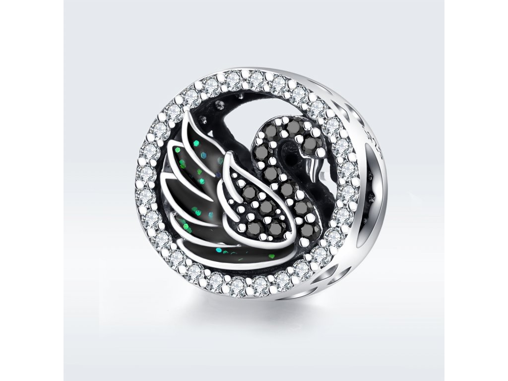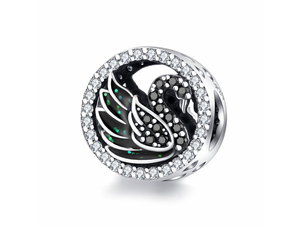 - Stříbrný přívěsek v designu Třpytivé labutě zdobené černými zirkony. Originální design přívěsku, kvalitní zpracování a materiál, ručně dohotovené.