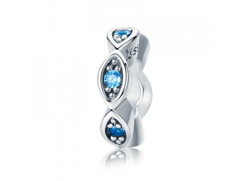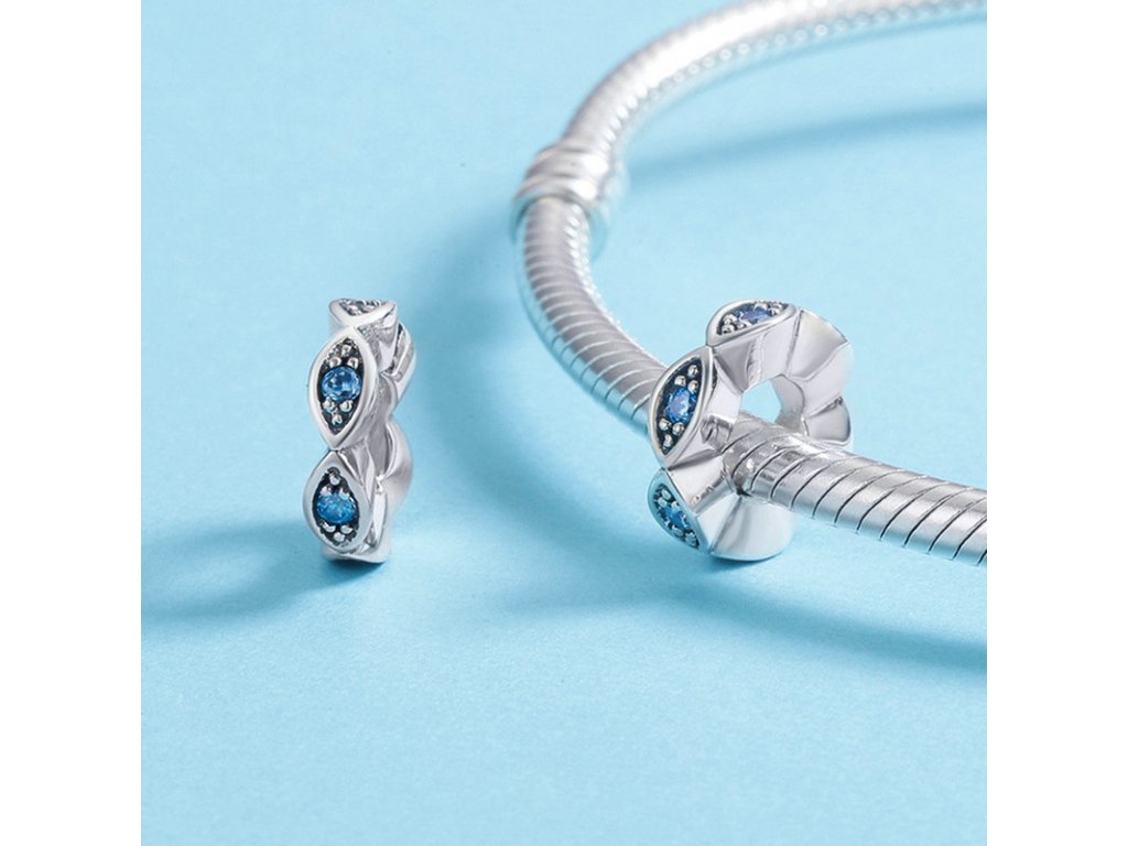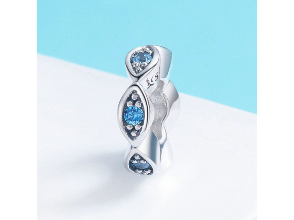Luxusní a propracovaný přívěsek nebo-li spacer zdobený ručně posázenými třpytivými kameny v podobě modrým zirkonů.