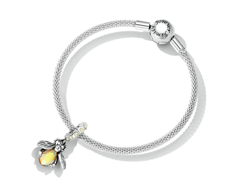 - Stříbrný visací přívěsek v designu včelky zdobené velkým broušeným sklem a zlatavými třpytivými zirkony. Originální design přívěsku, kvalitní zpracování a materiál, ručně dohotovené.