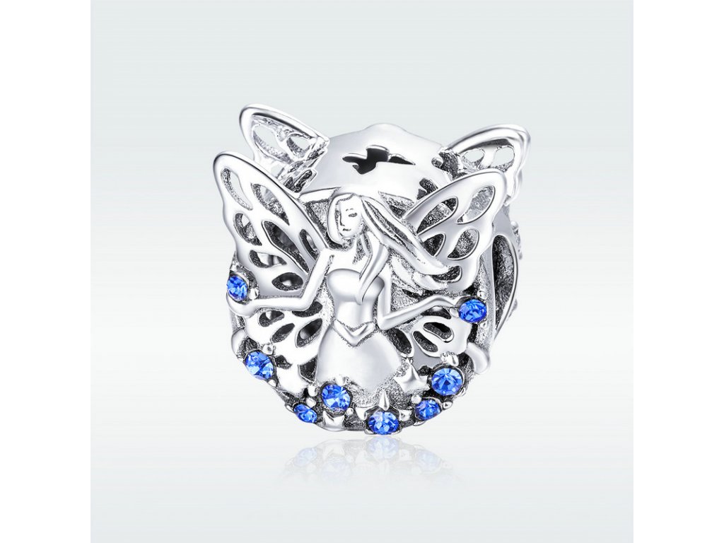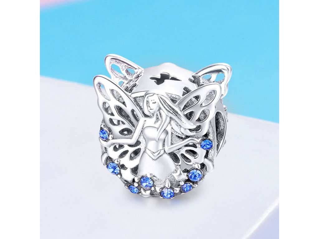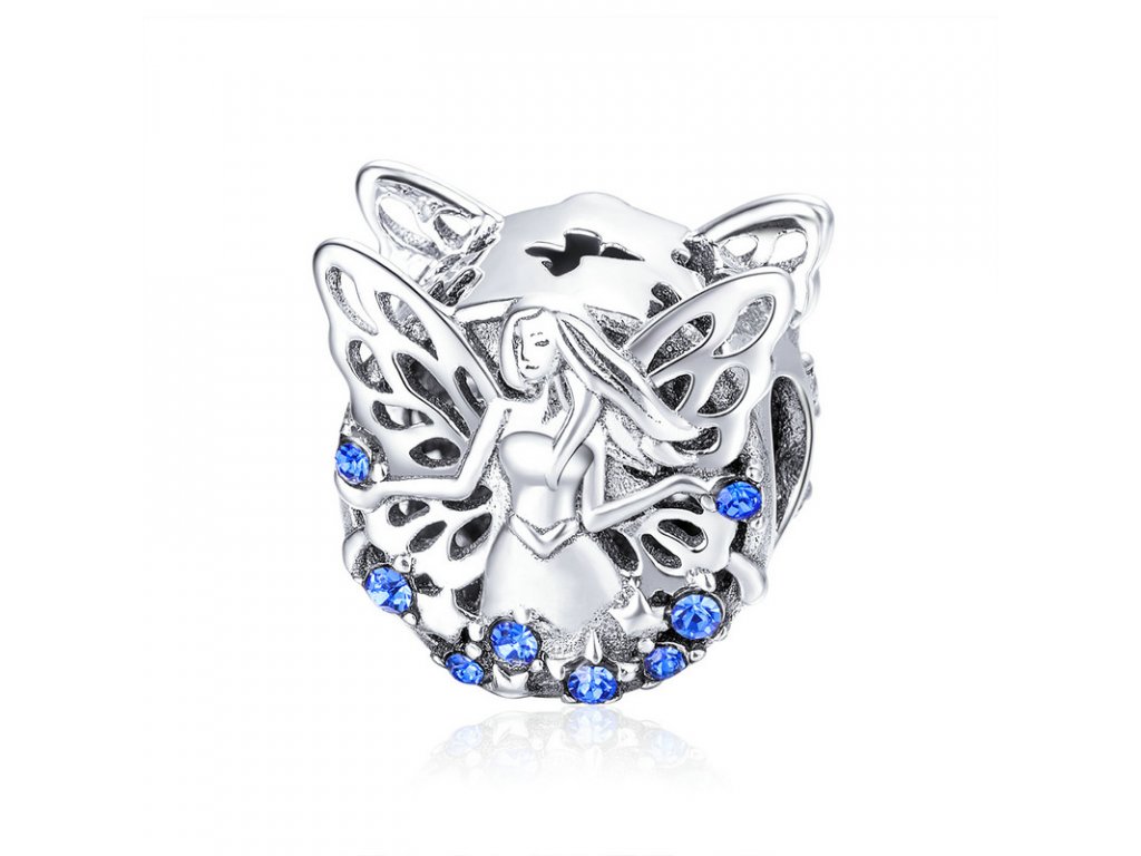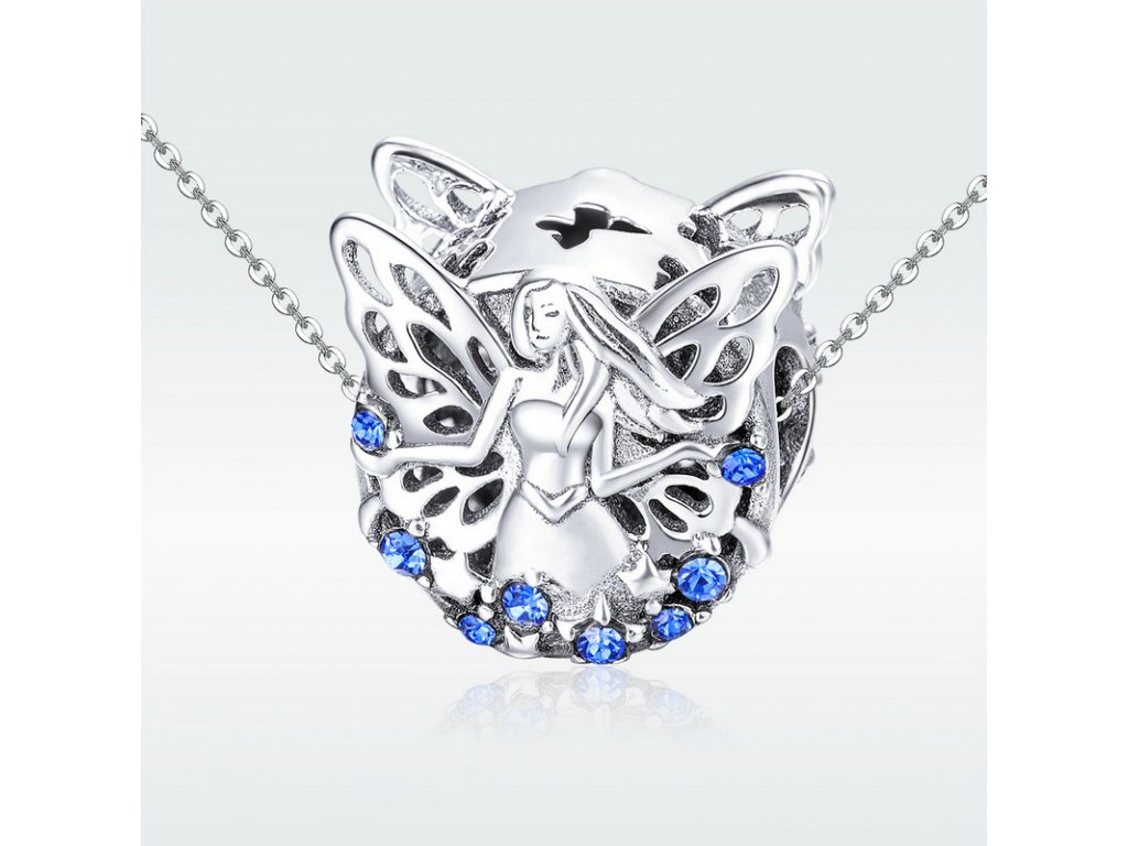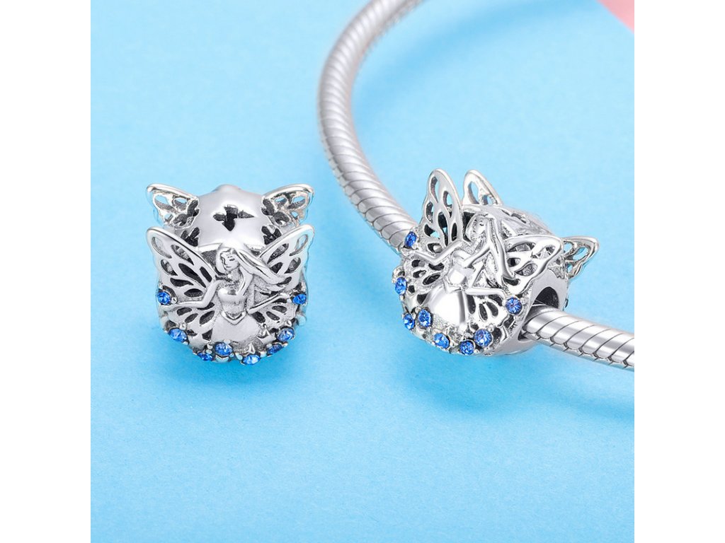- Krásný stříbrný korálek obohacený vílou moudrosti s třpytivými modrými zirkony. Originální design přívěsku, kvalitní zpracování a materiál, ručně dohotovené.