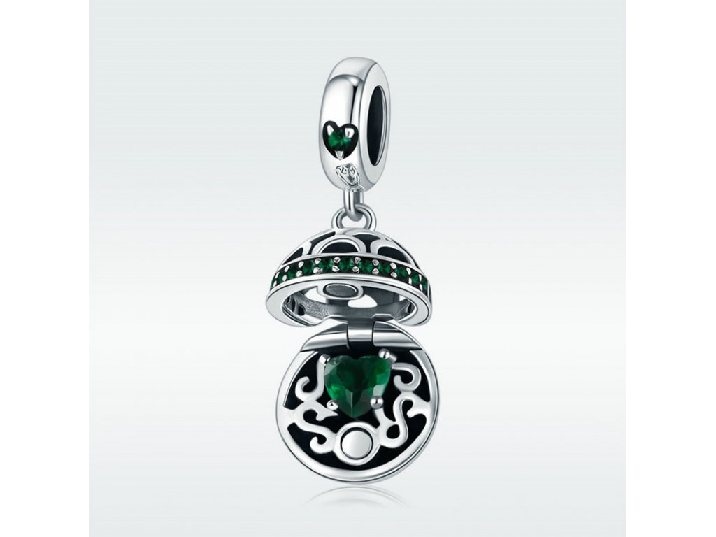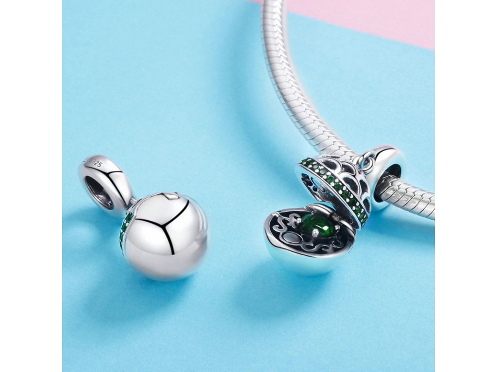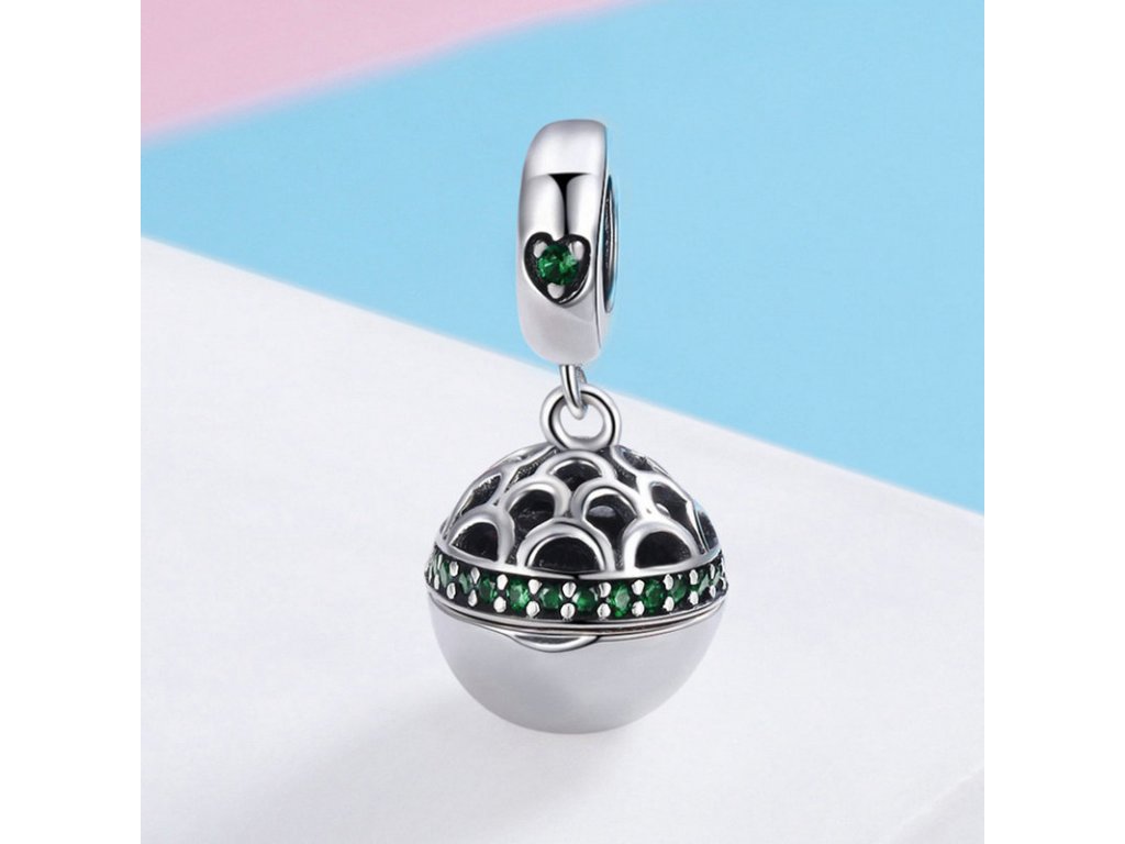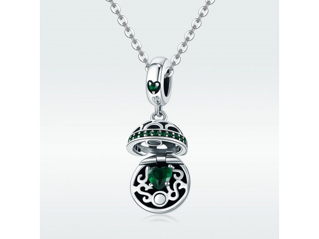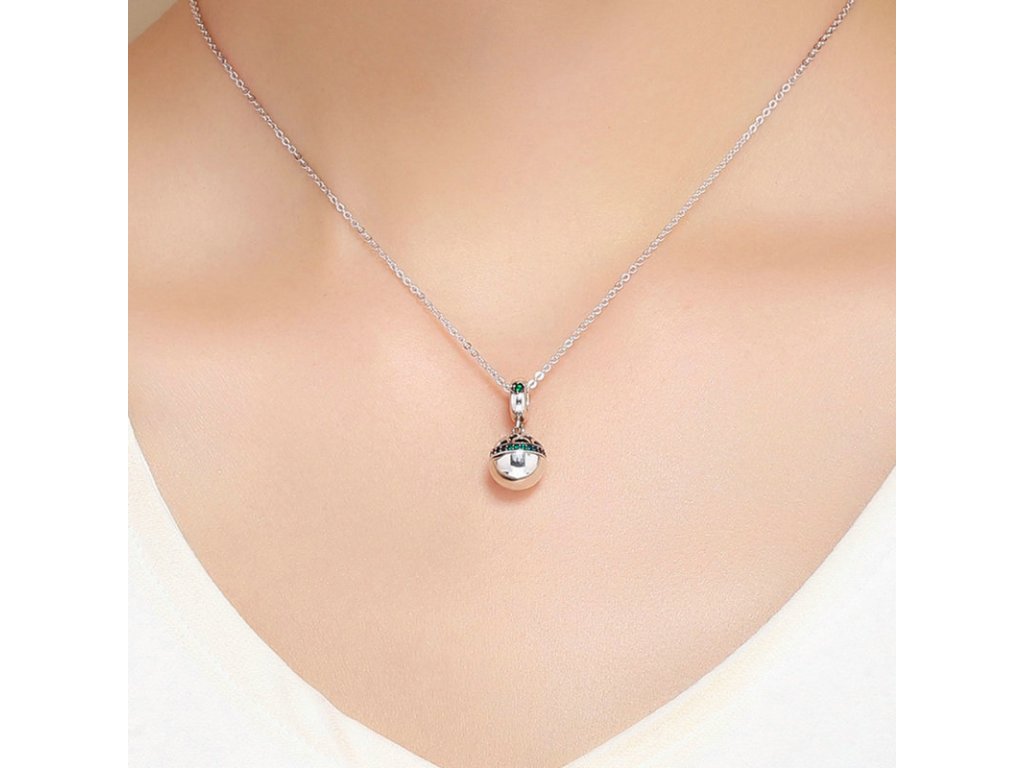- Luxusní a propracovaný stříbrný visací přívěsek v designu zeleného překvapení zdobený zirkony.