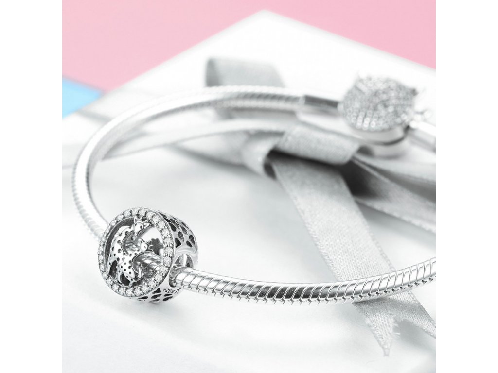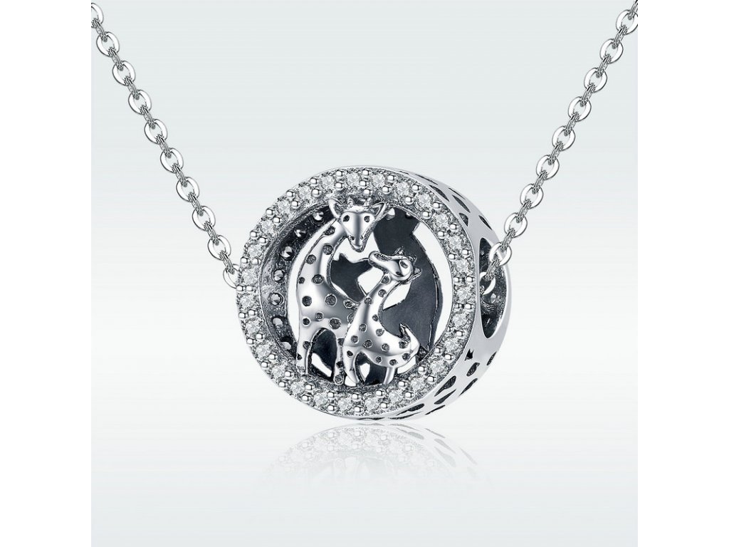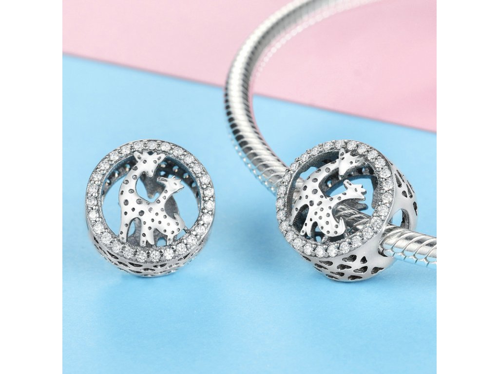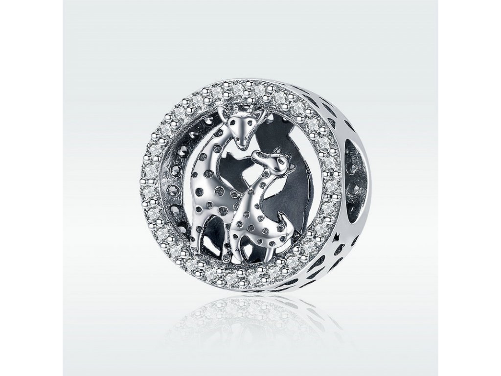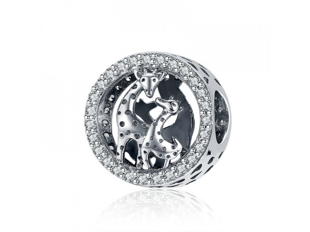 Luxusní a propracovaný stříbrný přívěsek / korálek se zirkony zobrazující žirafí rodinu. Originální design přívěsku, kvalitní zpracování a materiál, ručně dohotovené.